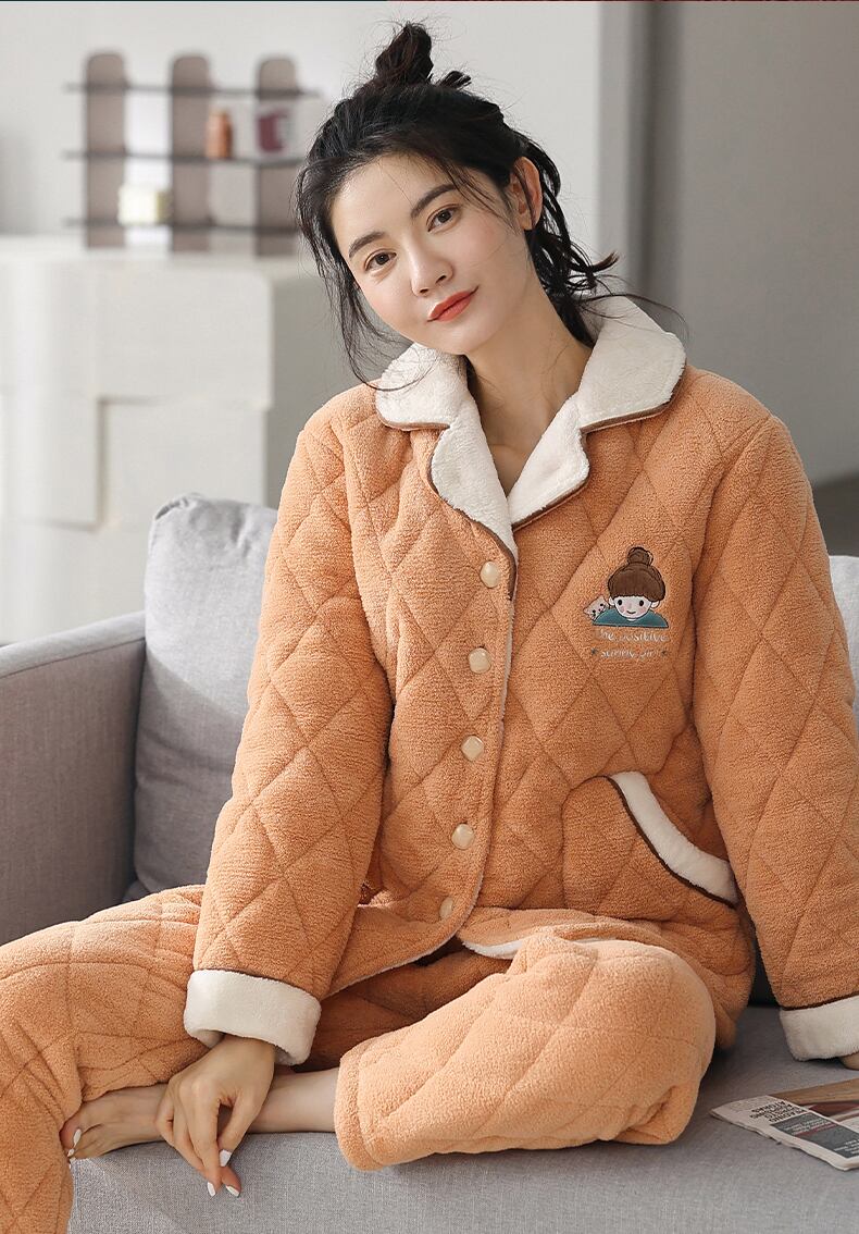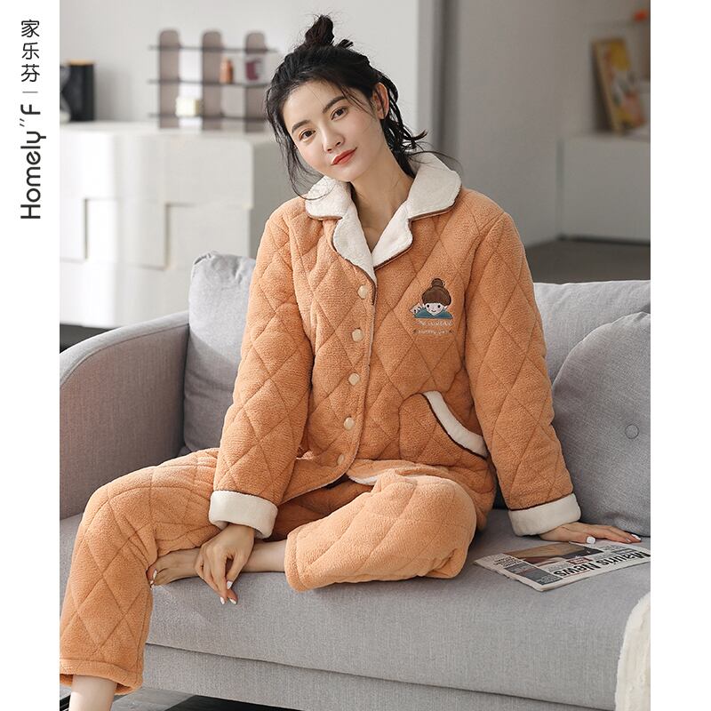 パジャマの女性の冬の3層の厚くされた超厚いコーラルフリースとベルベットのフランネルのキルティングジャケット冬の秋と冬の家庭服 jial163006485