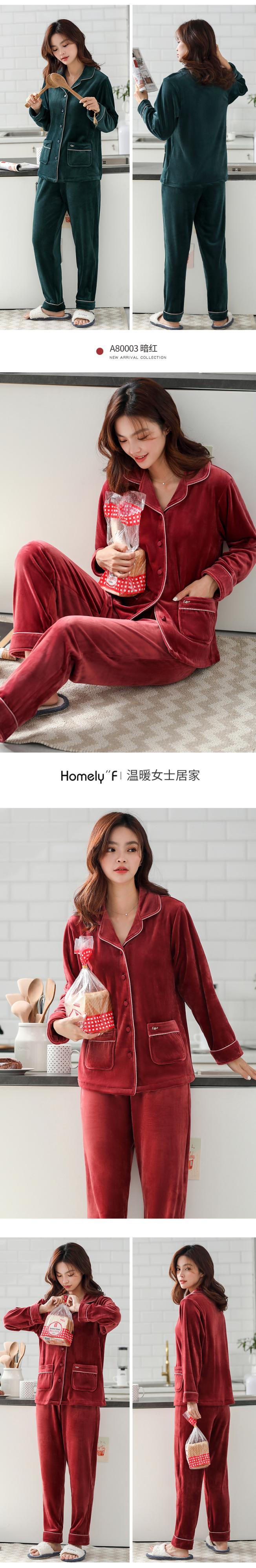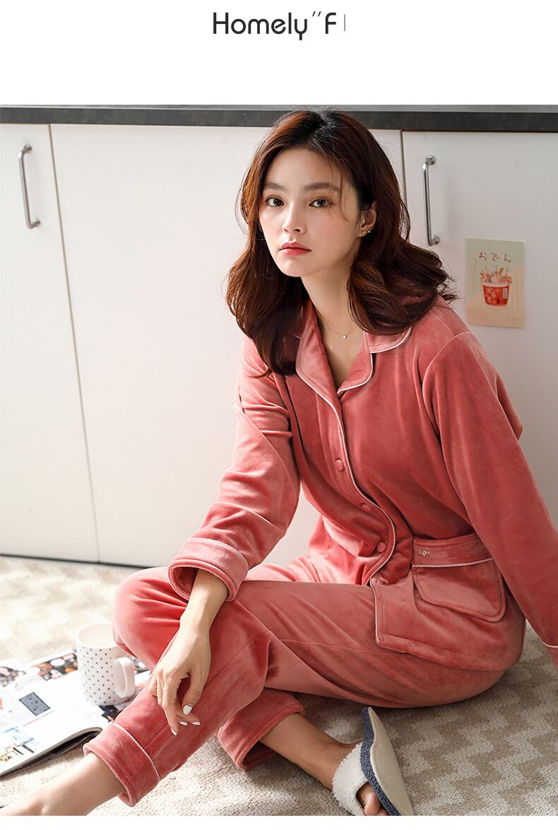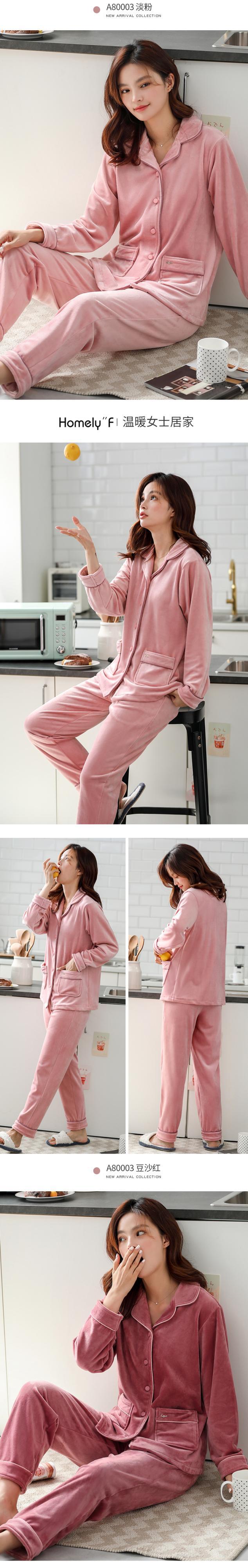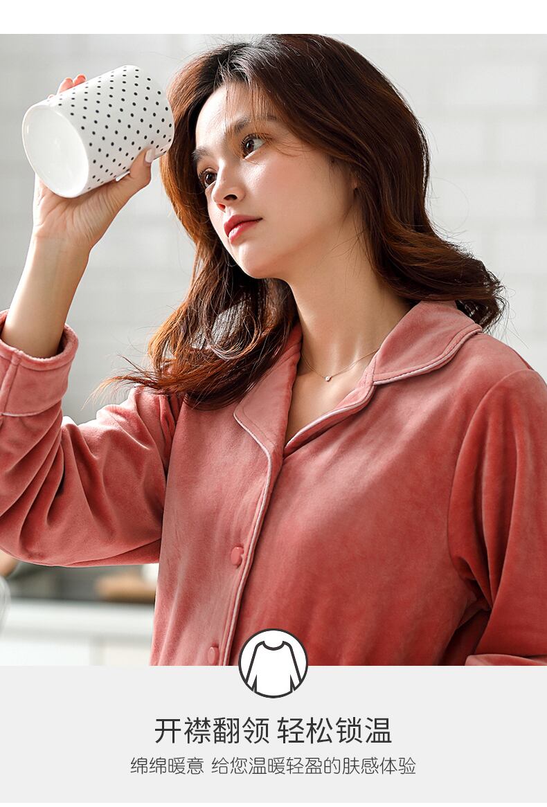 アイランドベルベットパジャマ女性の春と秋の肥厚とベルベットコーラルフリースフランネル家庭服秋と冬の薄いスーツ jial44949604658