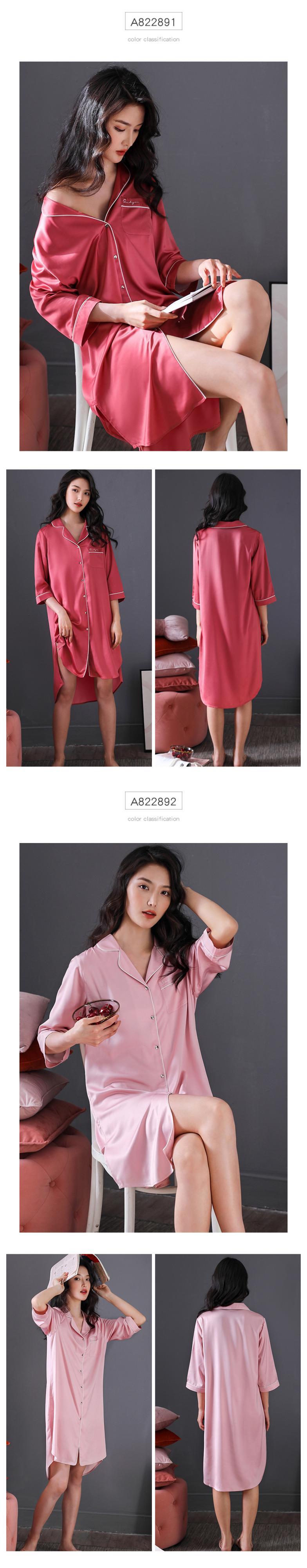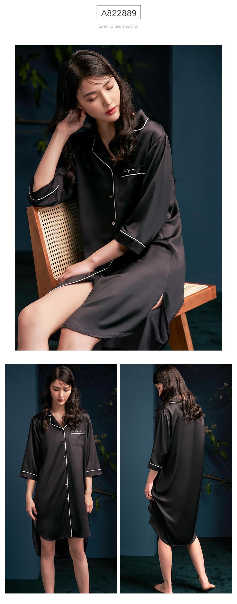 ネグリジェパジャマシルク春夏アイスシルク薄手のカーディガンシャツシミュレーションシルクセクシーな夏の膝上ドレス jial50566584100