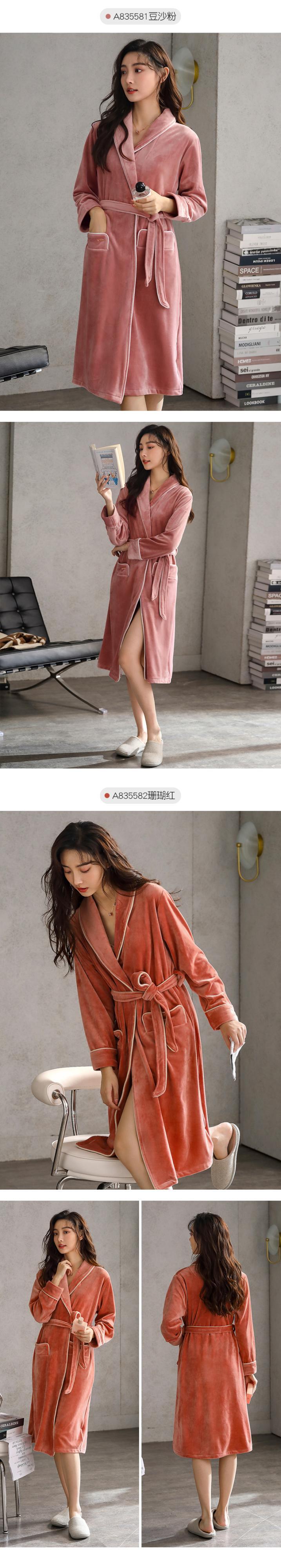 ナイトガウンの女性用バスローブパジャマ秋と冬のモデル冬のフランネルの肥厚とベルベットの珊瑚のベルベットの冬の中くらいの長さの春と秋のモデル jial14806659204
