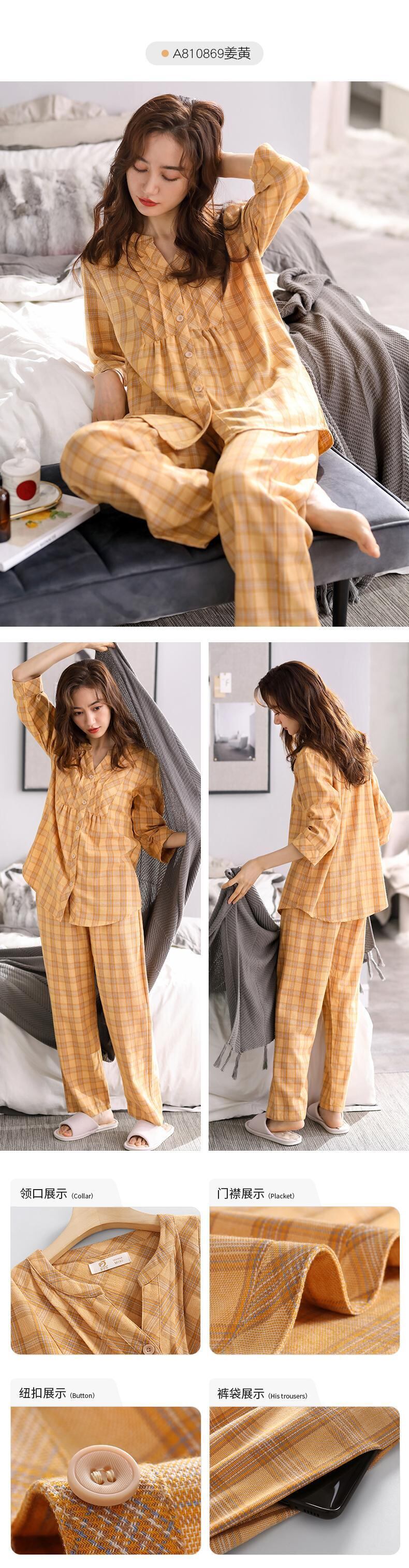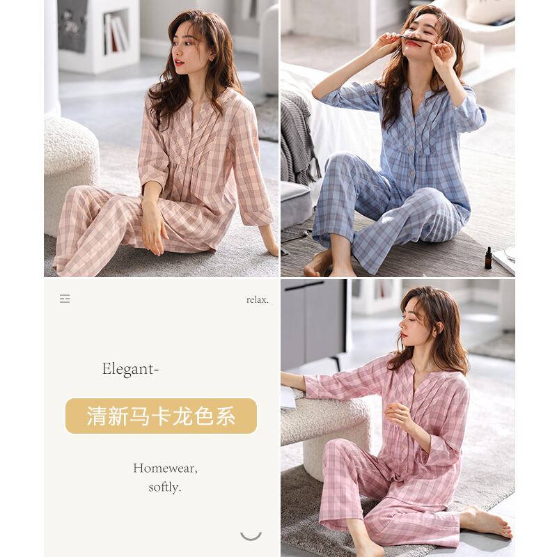 Carrefineパジャマレディース春夏コットン七分袖長袖家庭服春秋秋コットンガーゼ jial80800498304