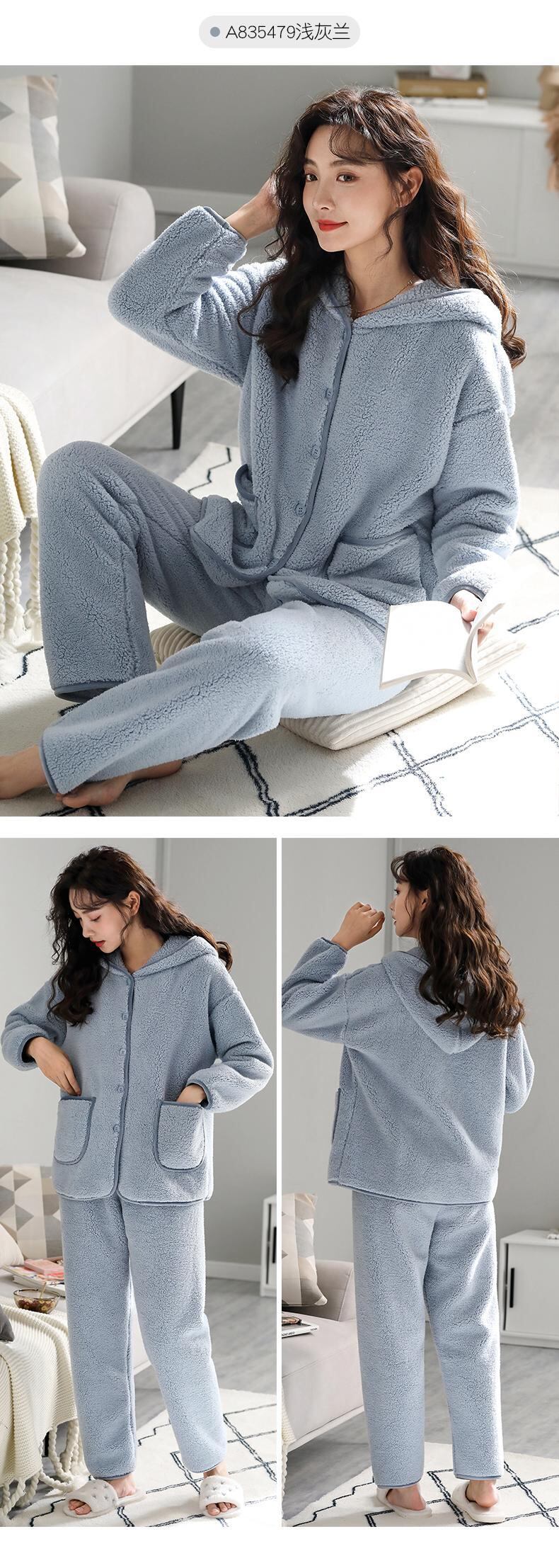 パジャマ秋冬フランネルシックニングとフリースコーラルフリースホームウェア冬フード付きラージサイズスーツ jial59314681829