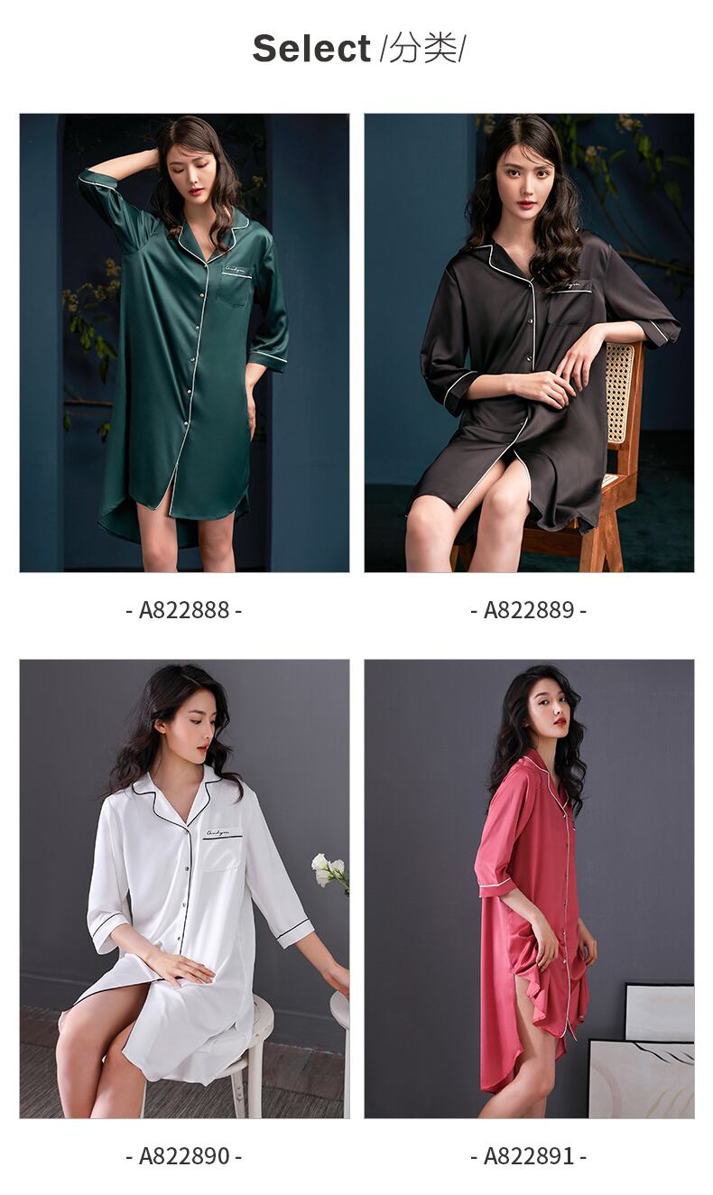 ネグリジェパジャマスカート夏夏シルクアイスシルク薄手のカーディガンシャツシミュレーションシルクルースプラスサイズ jial22743840912