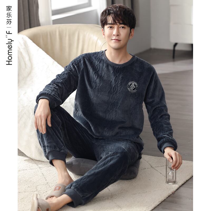 パジャマメンズ秋冬フランネル厚手プラスベルベットコーラルフリースメンズプラスサイズホームウェアウィンタースーツ jial47418889703