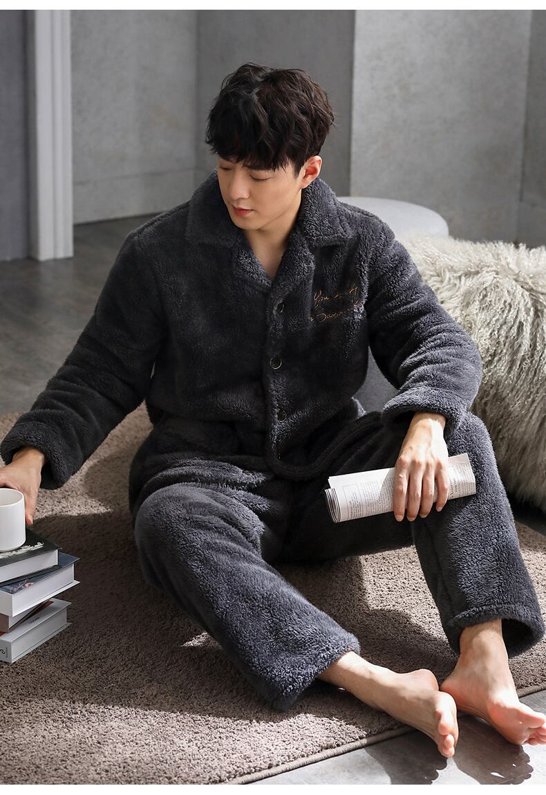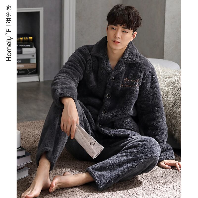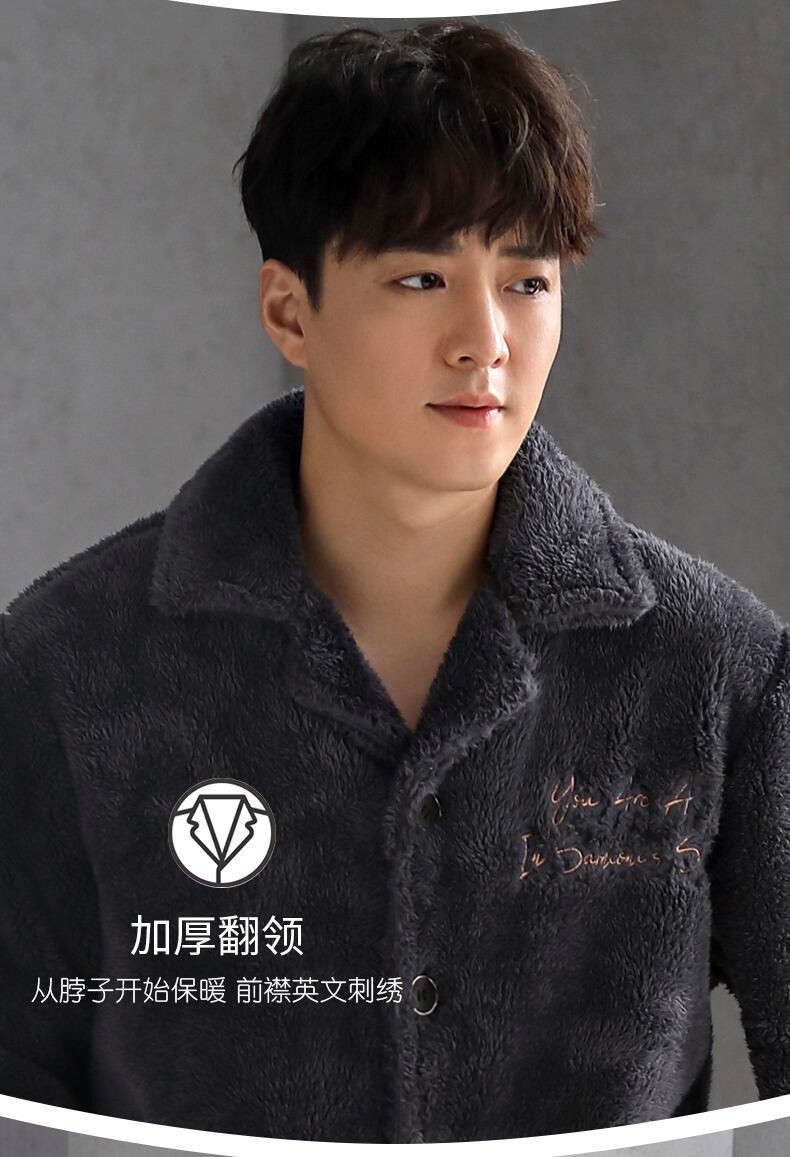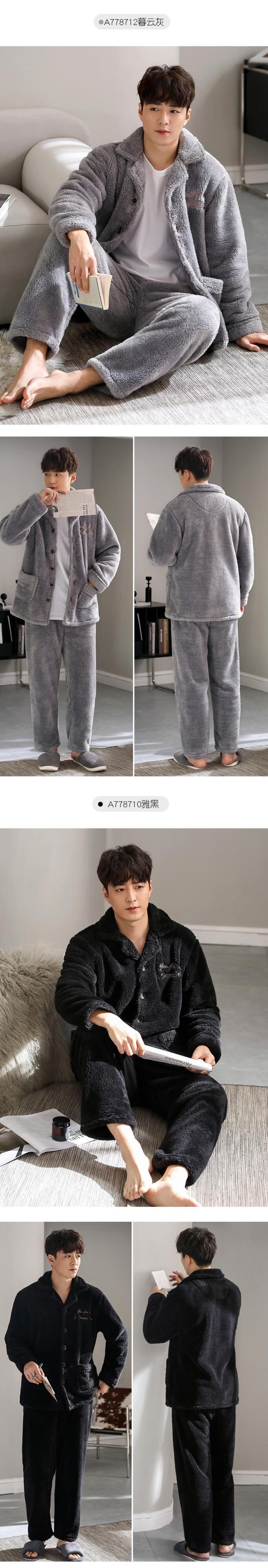 パジャマメンズウィンターフランネルシックニングとベルベットコーラルフリースホームウェアメンズラージサイズ秋冬スーツ jial11196476750