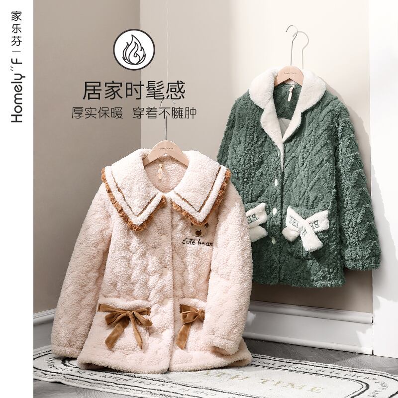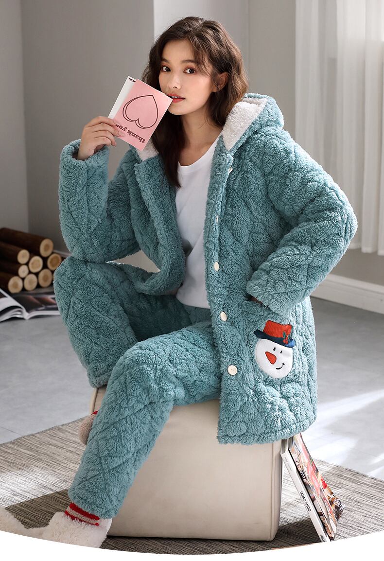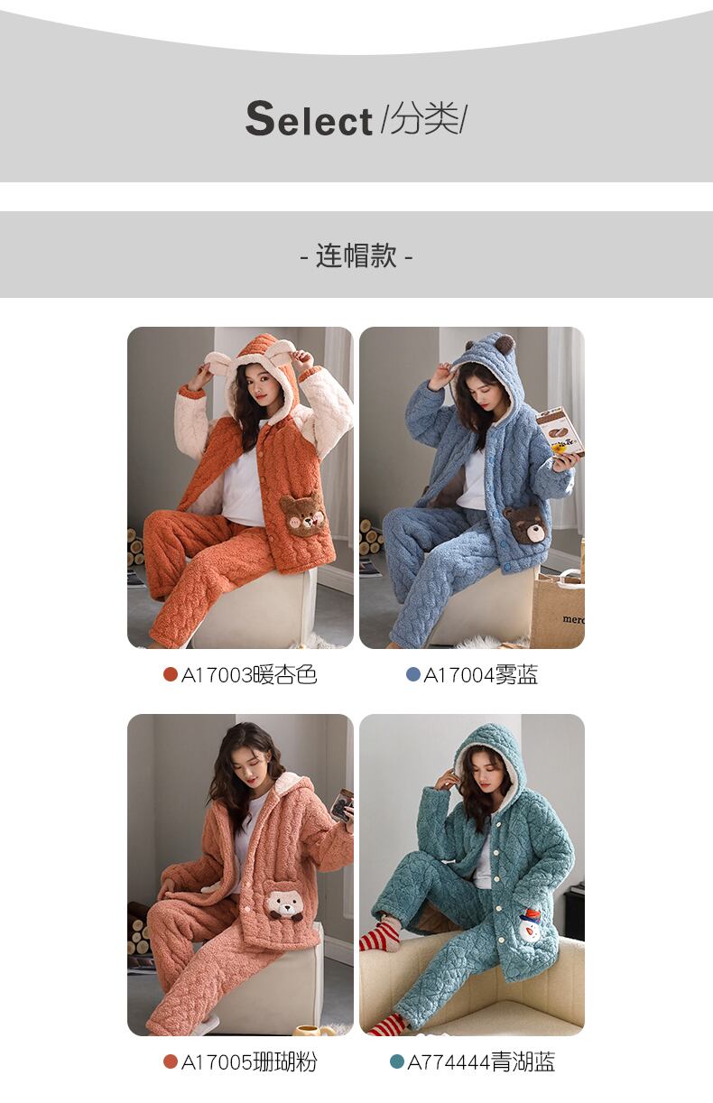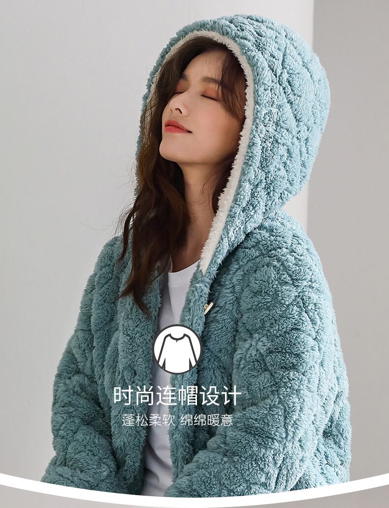 パジャマレディース冬3層厚手キルティングジャケットコーラルベルベットプラスベルベットフランネル家庭服暖かい秋と冬の冬 jial45852327228