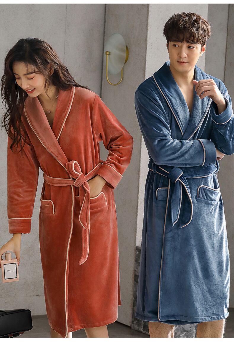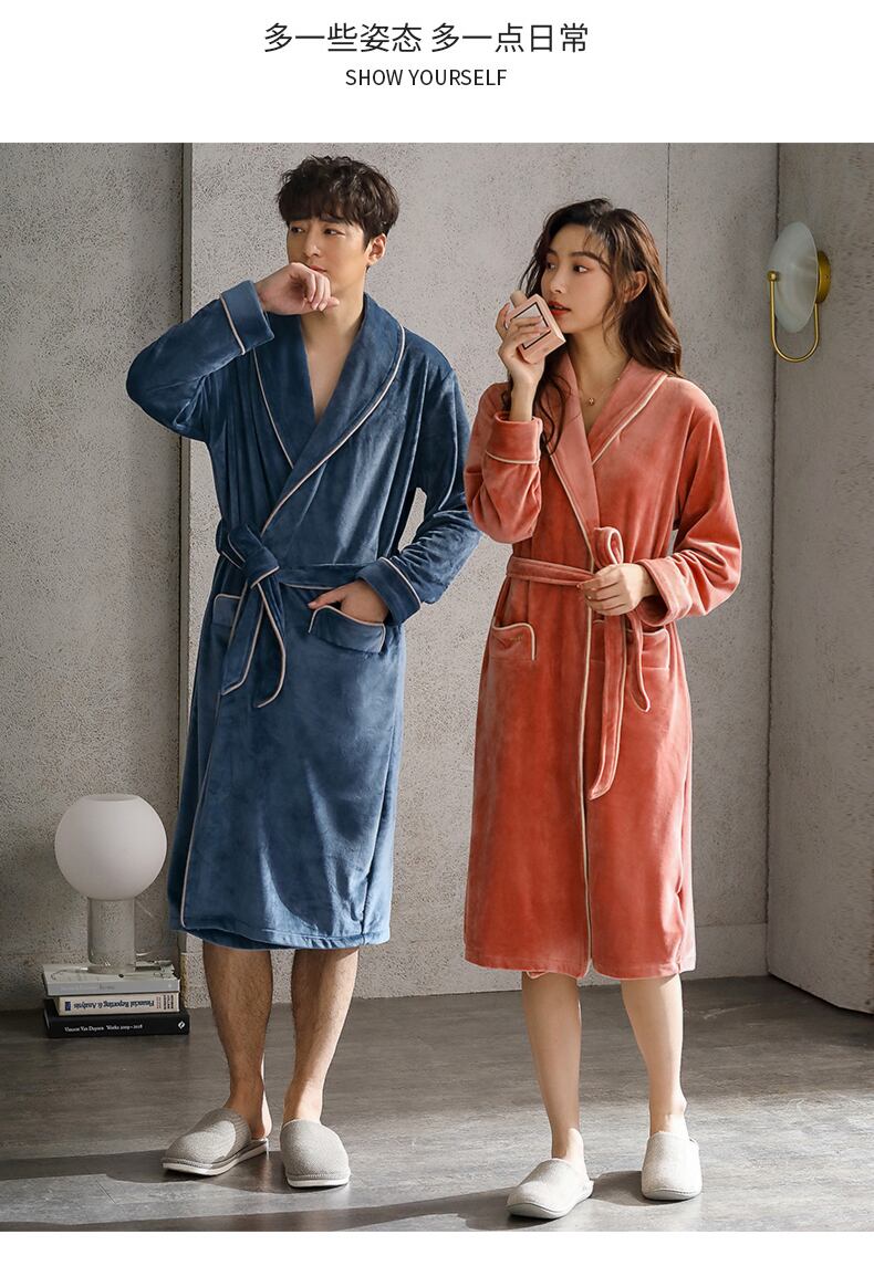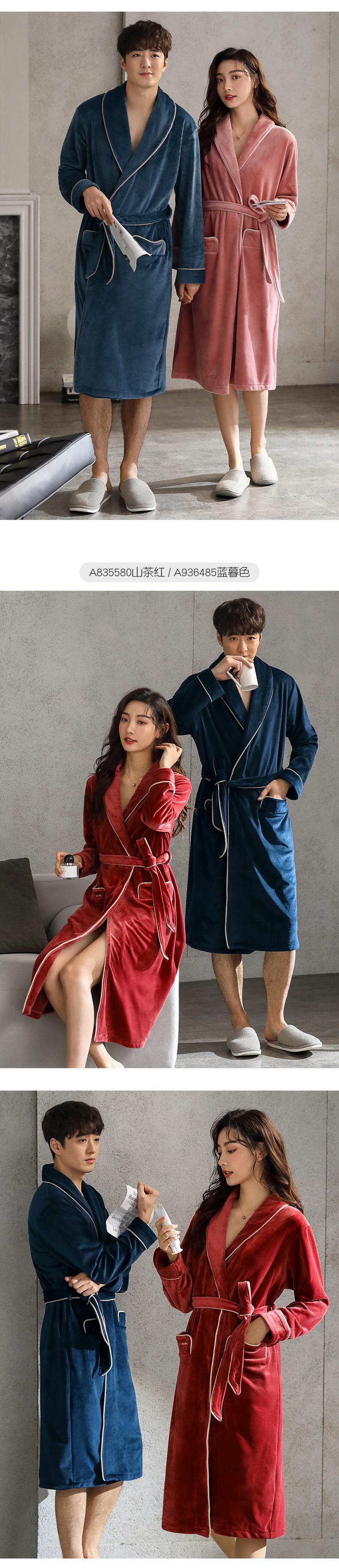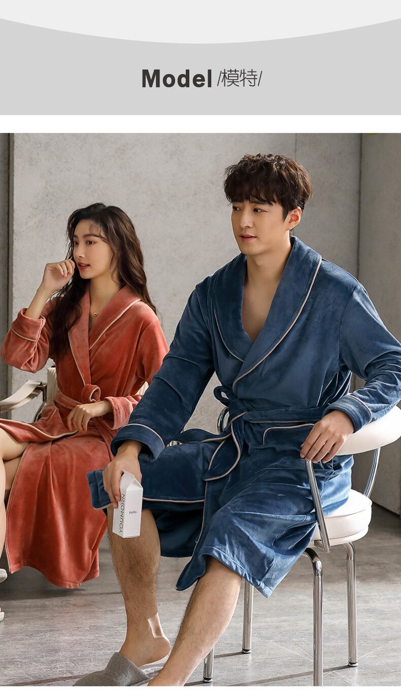 カップルナイトガウンメンズバスローブレディースパジャマ秋冬フランネルシックニングプラスベルベットコーラルベルベットミドル丈春秋モデル jial67016854708