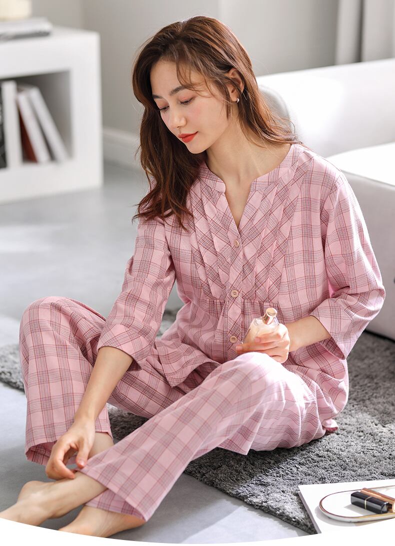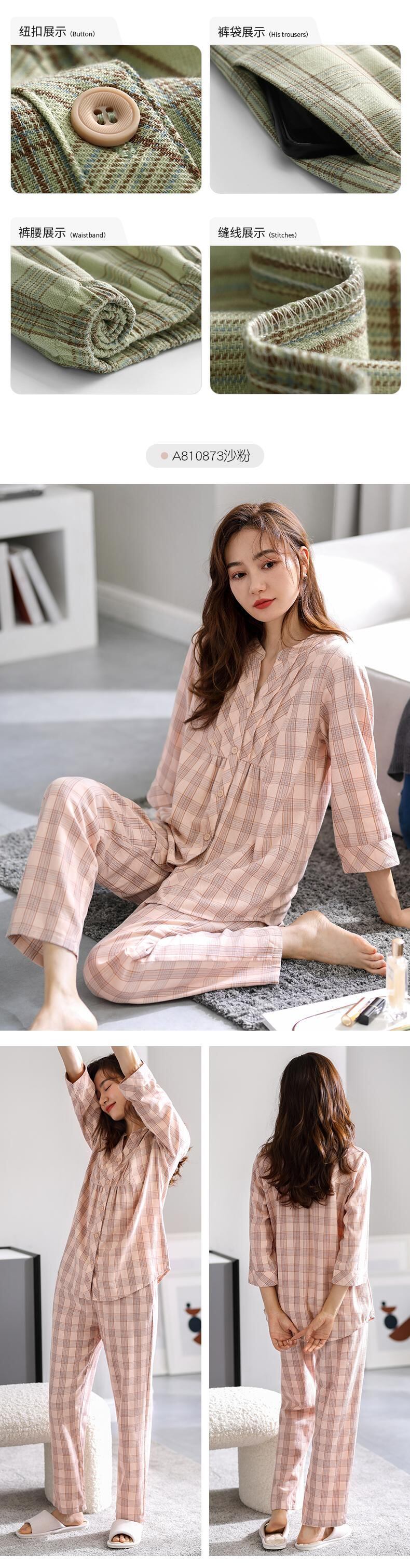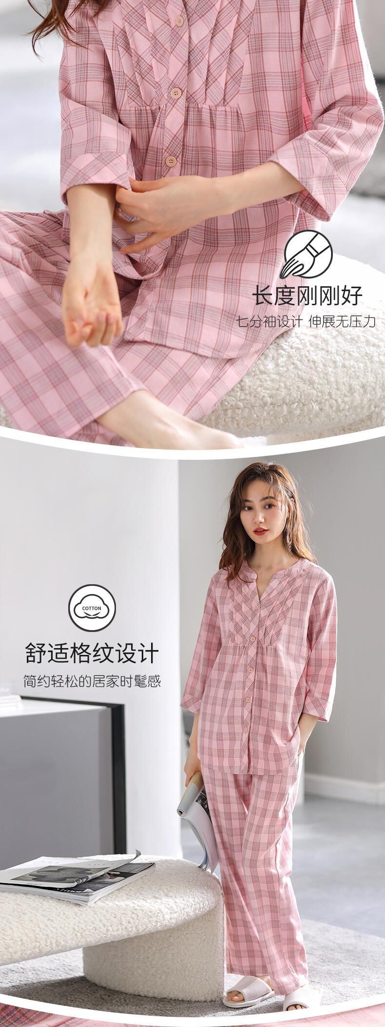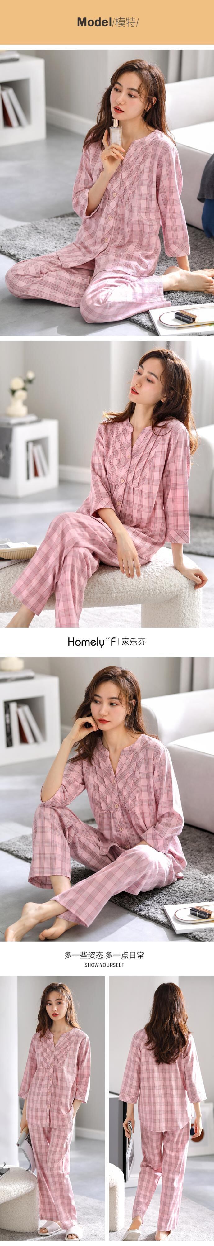 Carrefineパジャマレディース春夏コットン七分袖長袖家庭服春秋秋コットンガーゼ jial50276853720
