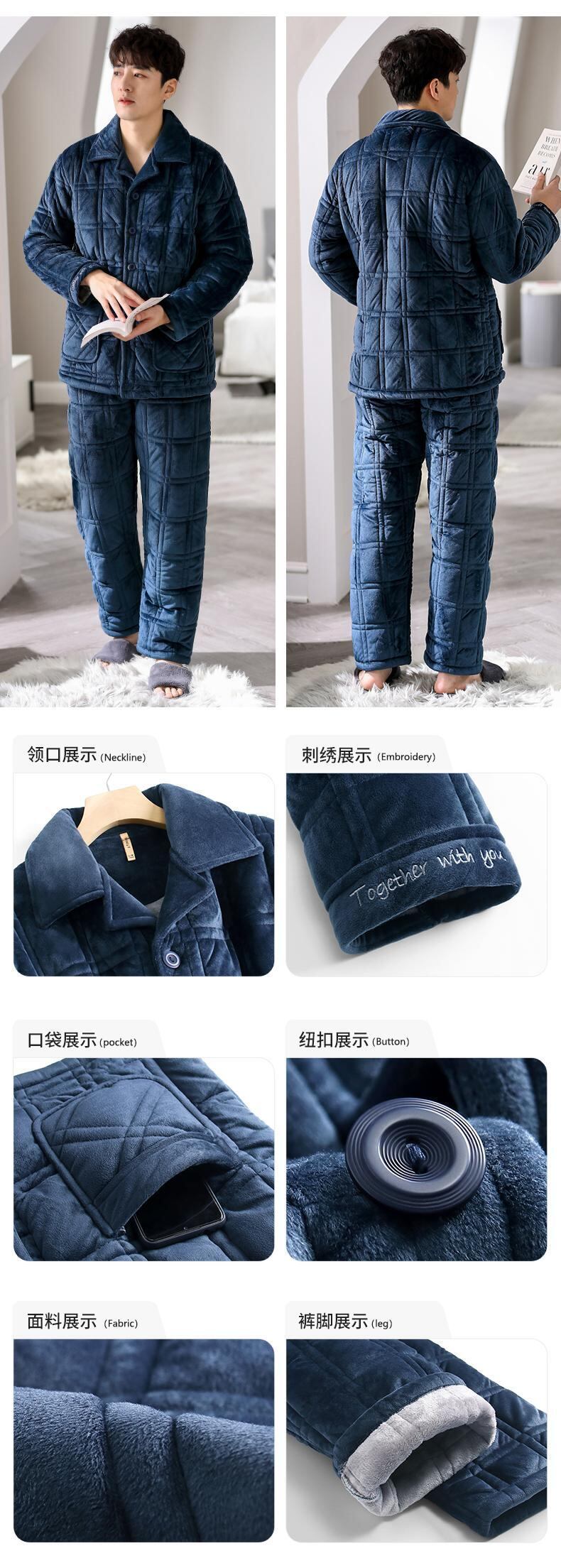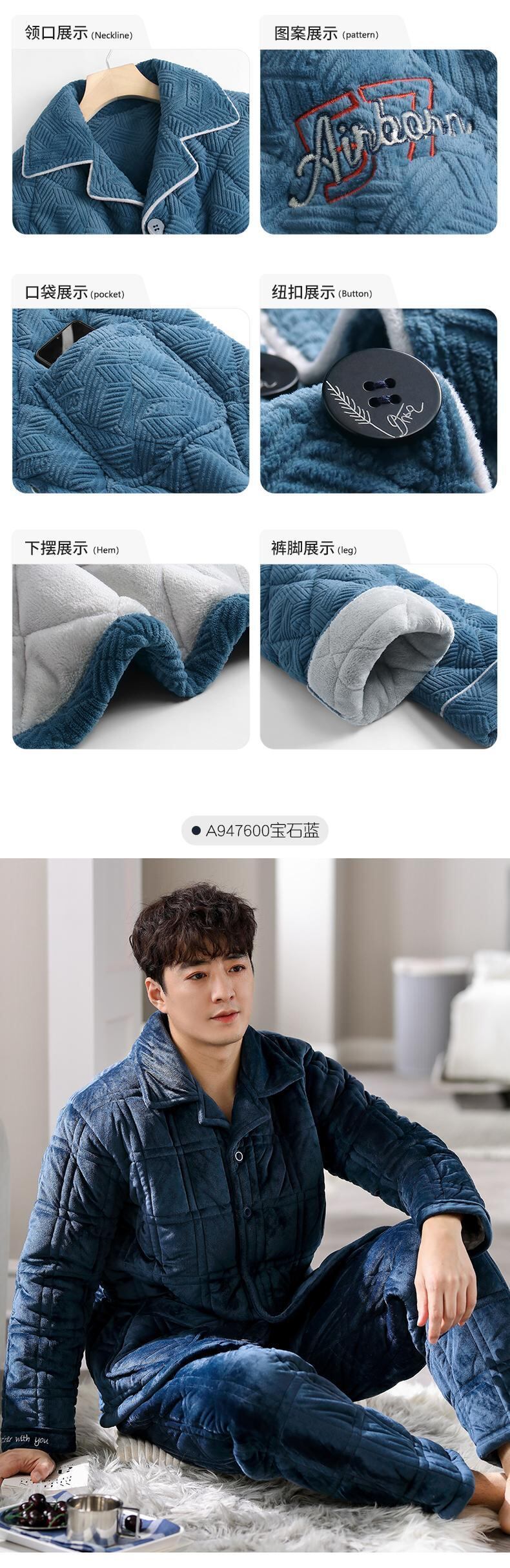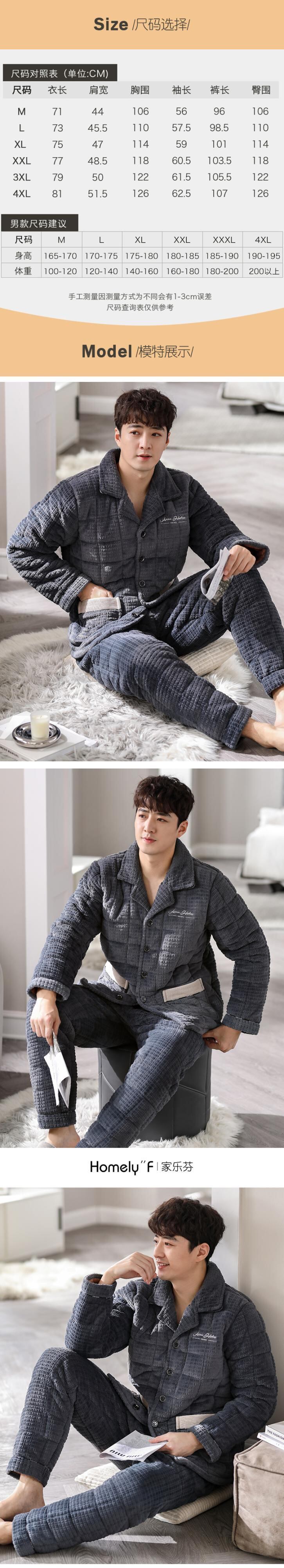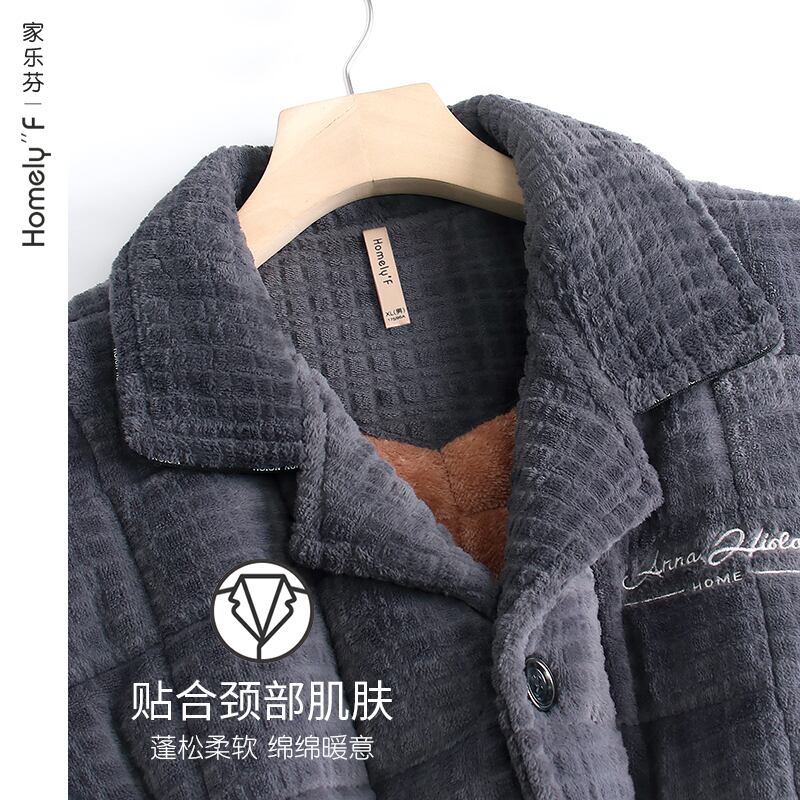 パジャマメンズ冬3層厚手超厚キルティングフランネルプラスベルベットコーラルフリースホームサービス秋冬モデル jial17873753504