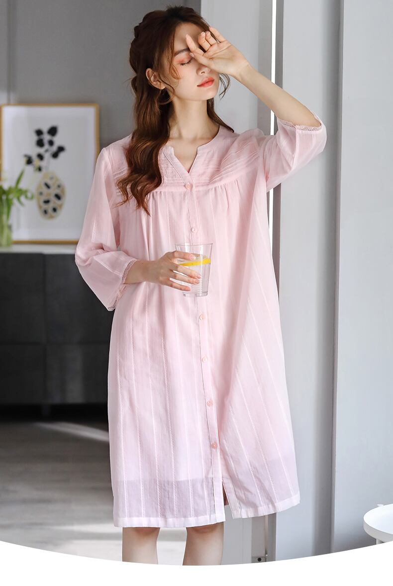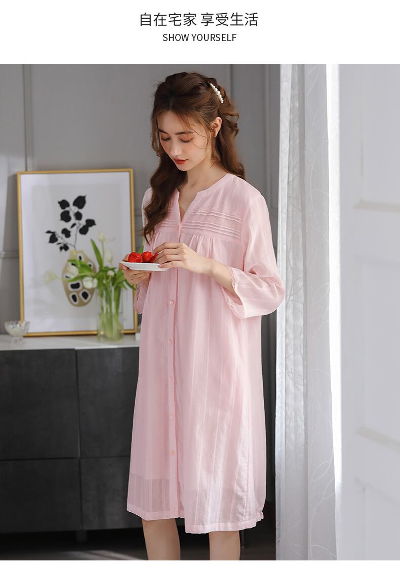 織り綿ガーゼネグリジェレディースパジャマ春夏綿七分袖春秋薄手綿カーディガン長袖 jial76752668737