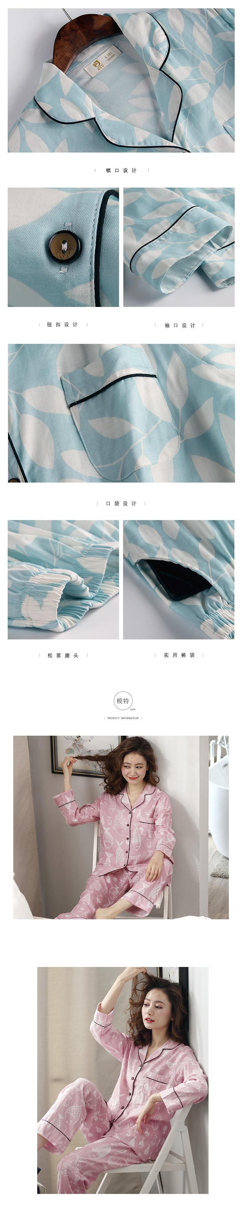 パジャマ春春夏長袖綿ガーゼ綿薄手春・秋ホームウェア織り綿 jial29439010387