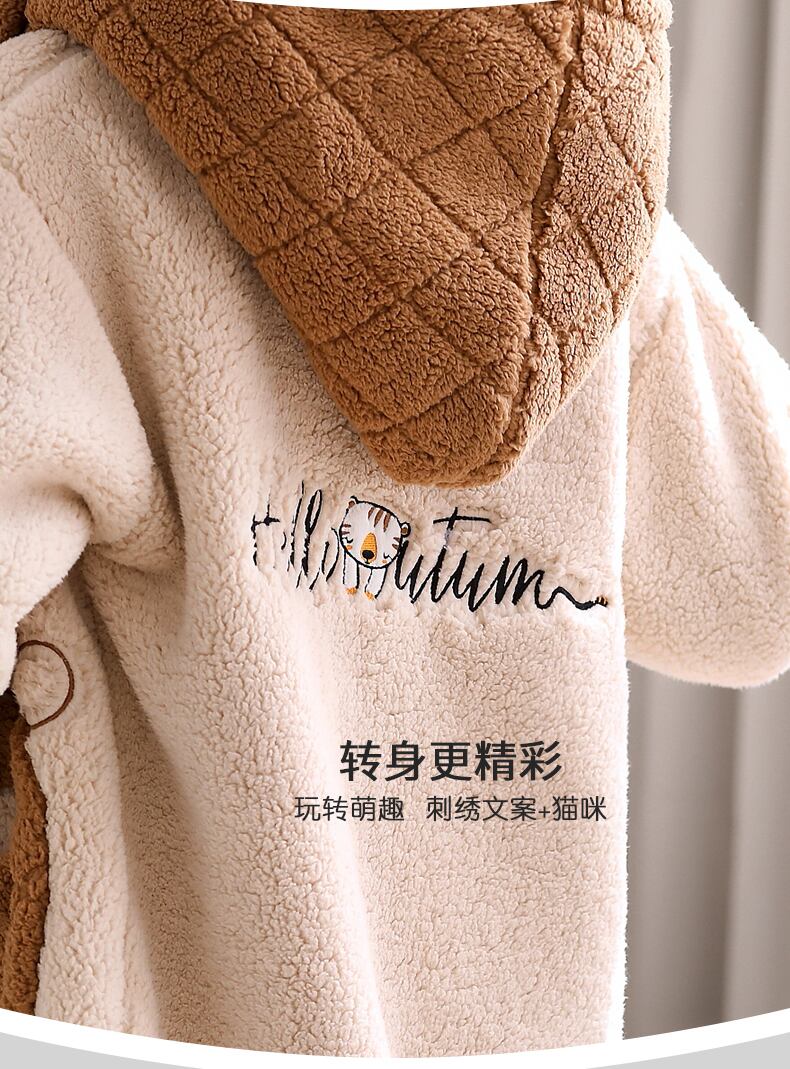 パジャマ秋冬スタイル冬肥厚フランネルフランネル冬コーラルフリースホームウェアフード付きロングスーツ jial28162961314