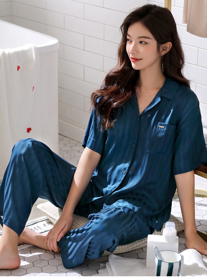 パジャマレディースサマーシルクアイスシルク半袖パンツホームウェアサマーシンイミテーションシルクラージサイズツーピーススーツ jial29227547000