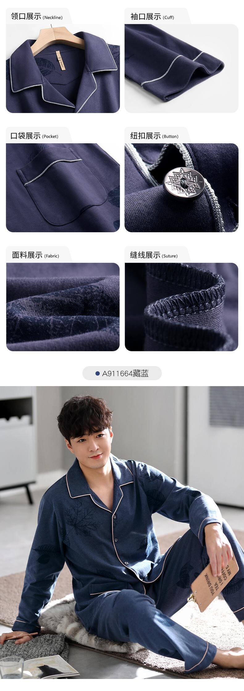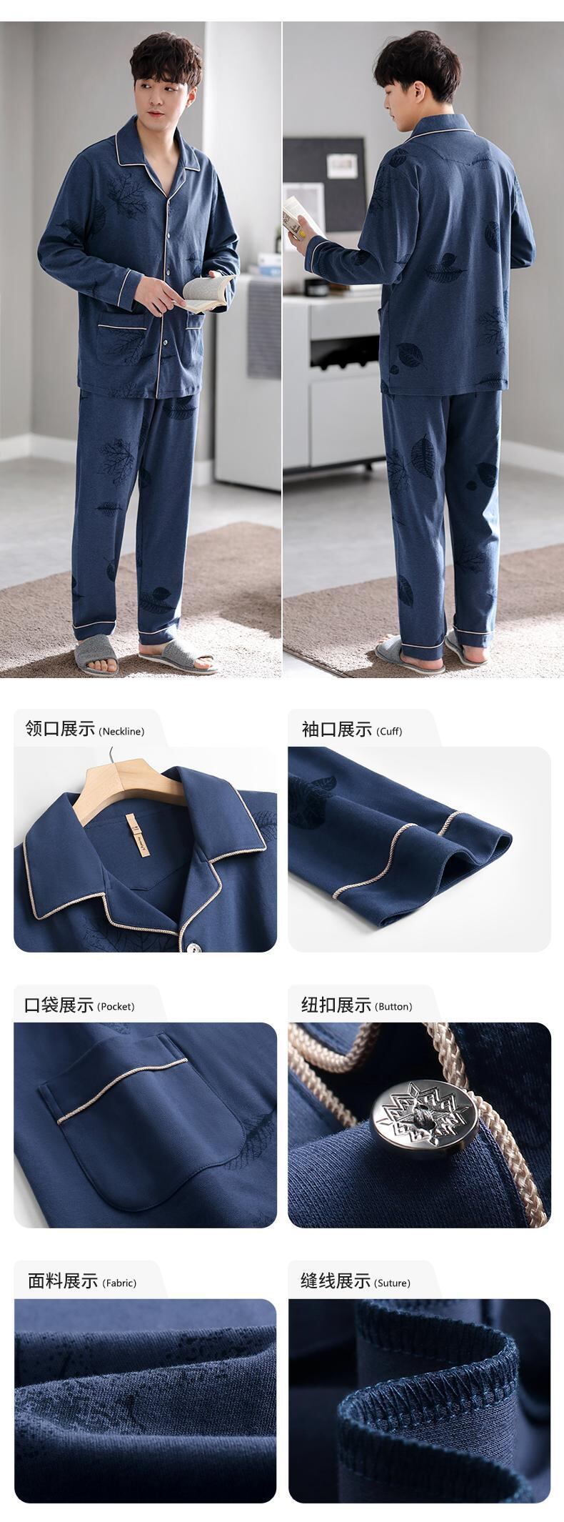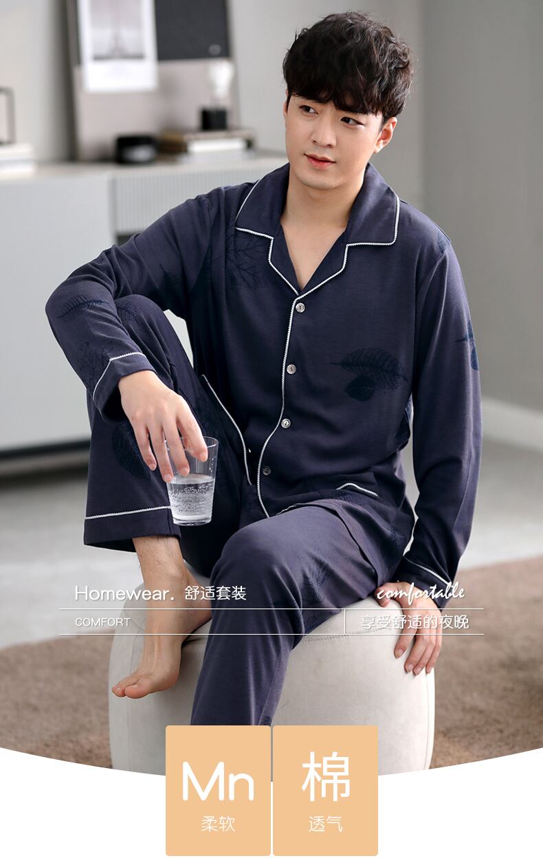 Carrefineパジャマメンズ春秋秋コットン長袖家庭服コットン秋冬四季メンズスーツ jial36708009649