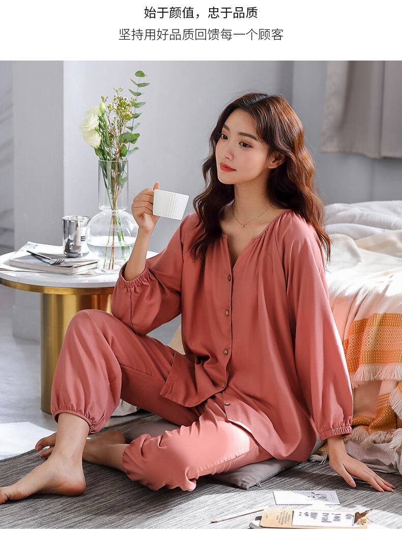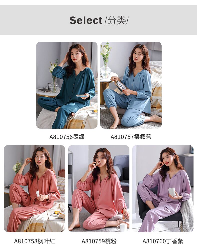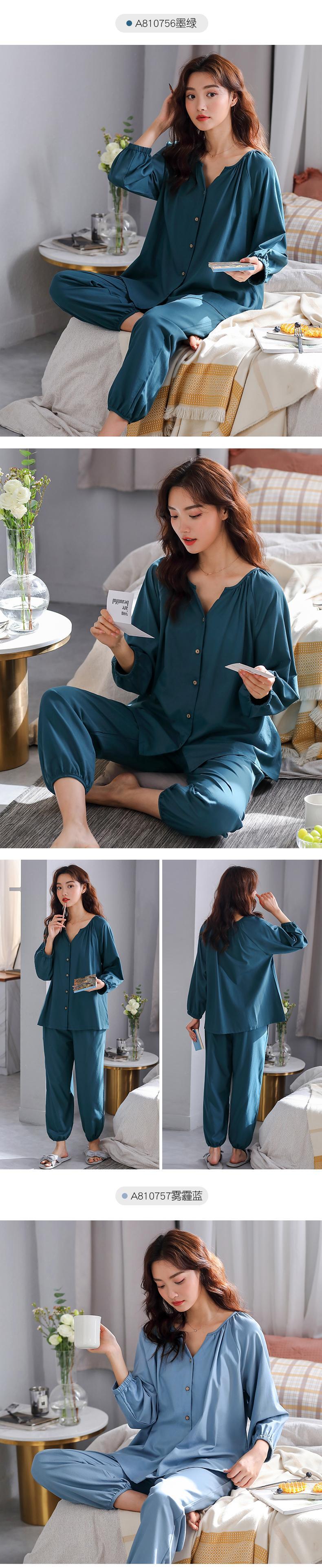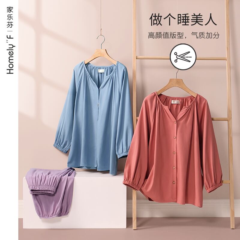 パジャマ春夏長袖レンチングモーダルホームウェア薄い春と秋のアイスシルクVネックラージサイズスーツ jial94499658704