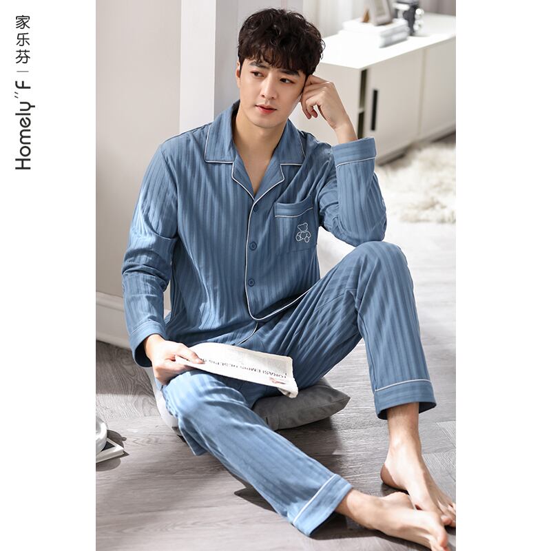Carrefineパジャマメンズ春秋秋コットン長袖家庭服コットン秋冬四季メンズスーツ jial77489777171