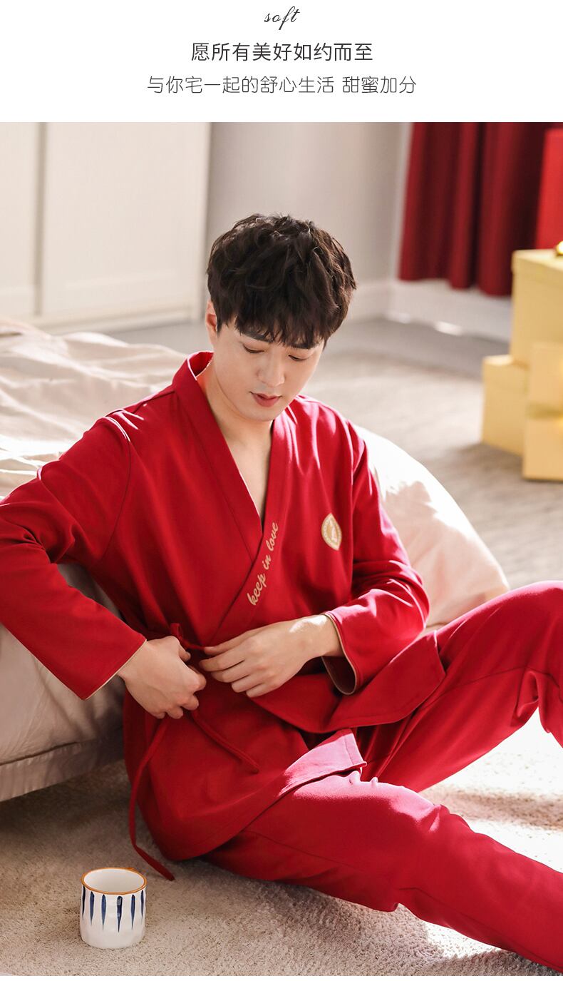 パジャマメンズ春秋モデル秋コットン長袖家庭服コットンレッド出生の着物 jial101746176