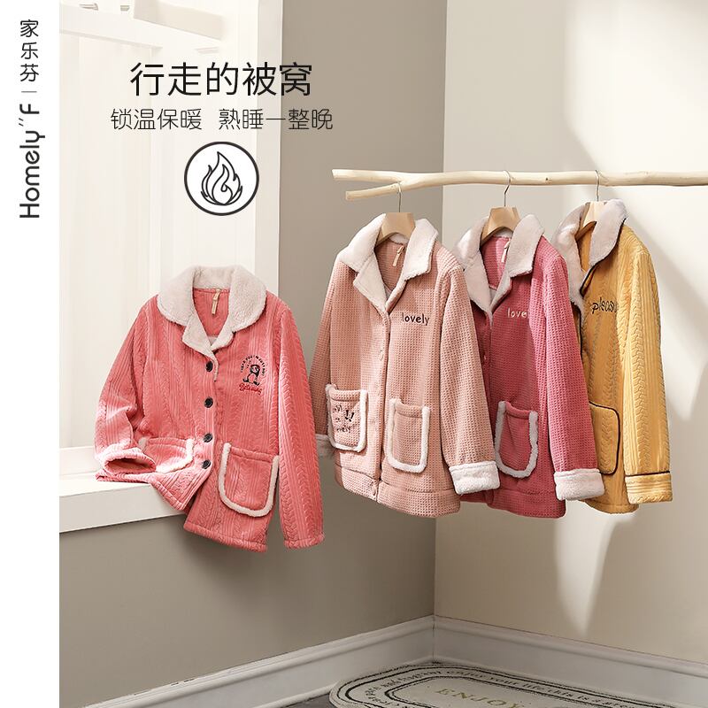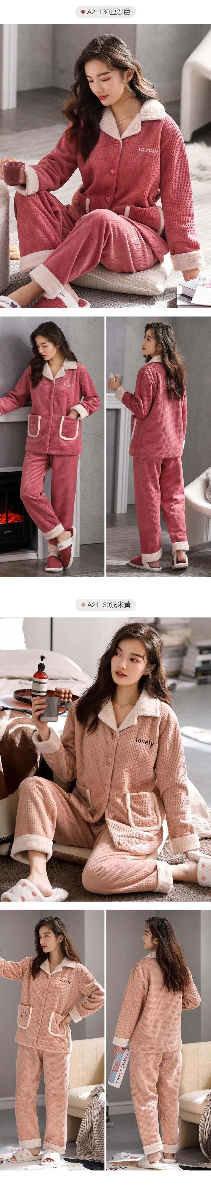 パジャマの女性の冬の秋と冬の複合キルティングコーラルベルベット厚くとベルベットフランネル家庭服冬のスーツ jial57499663624