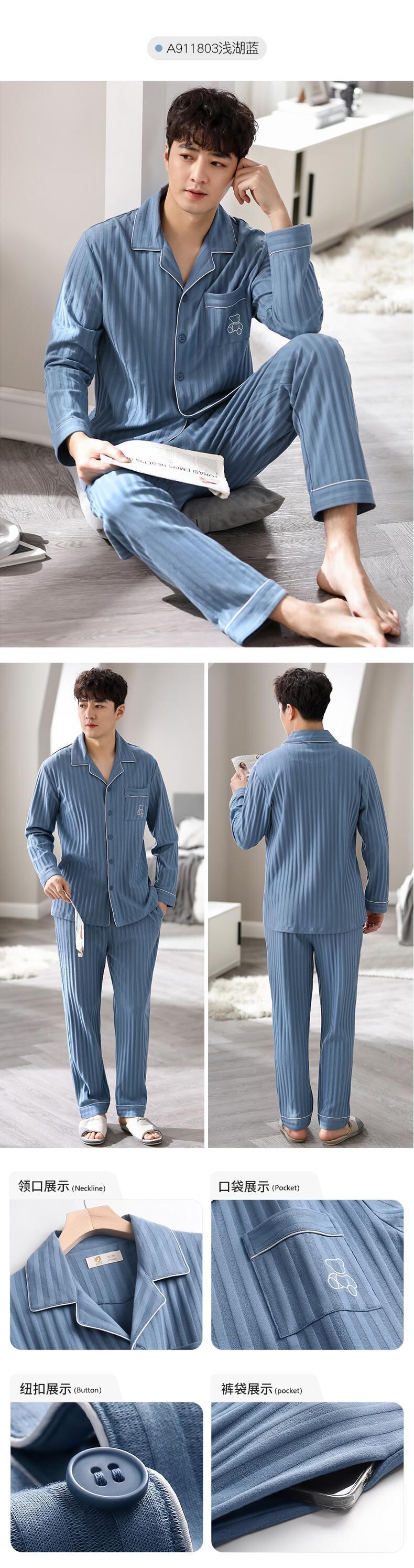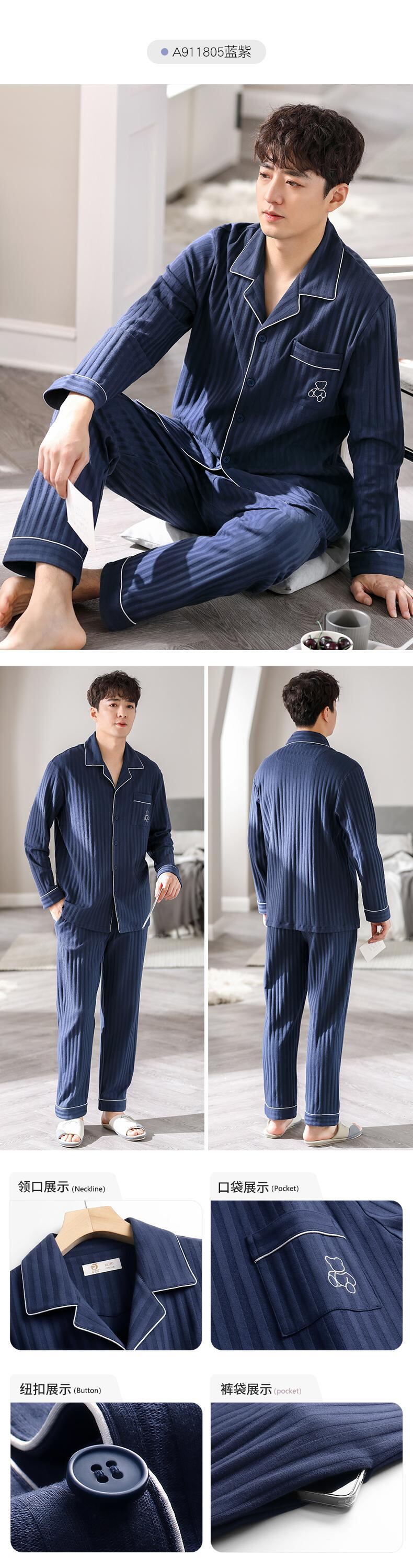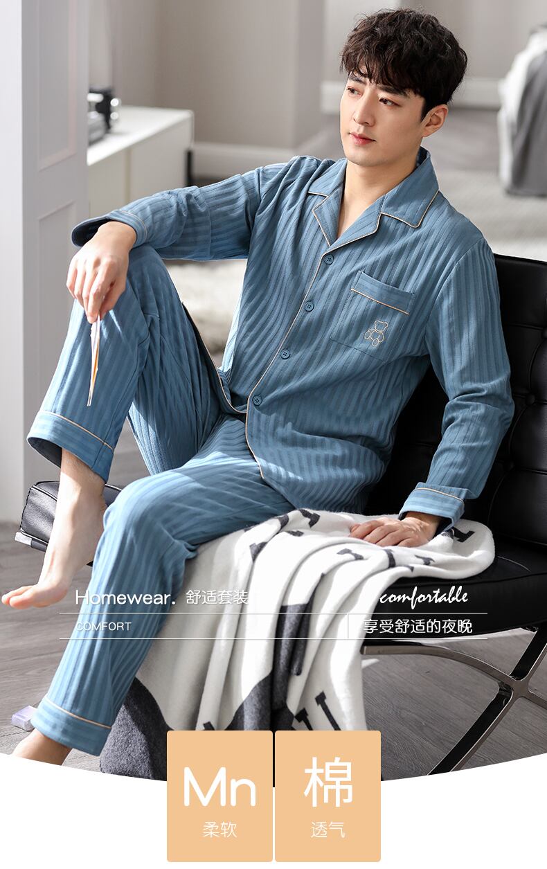 Carrefineパジャマメンズ春秋秋コットン長袖家庭服コットン秋冬四季メンズスーツ jial48756008720