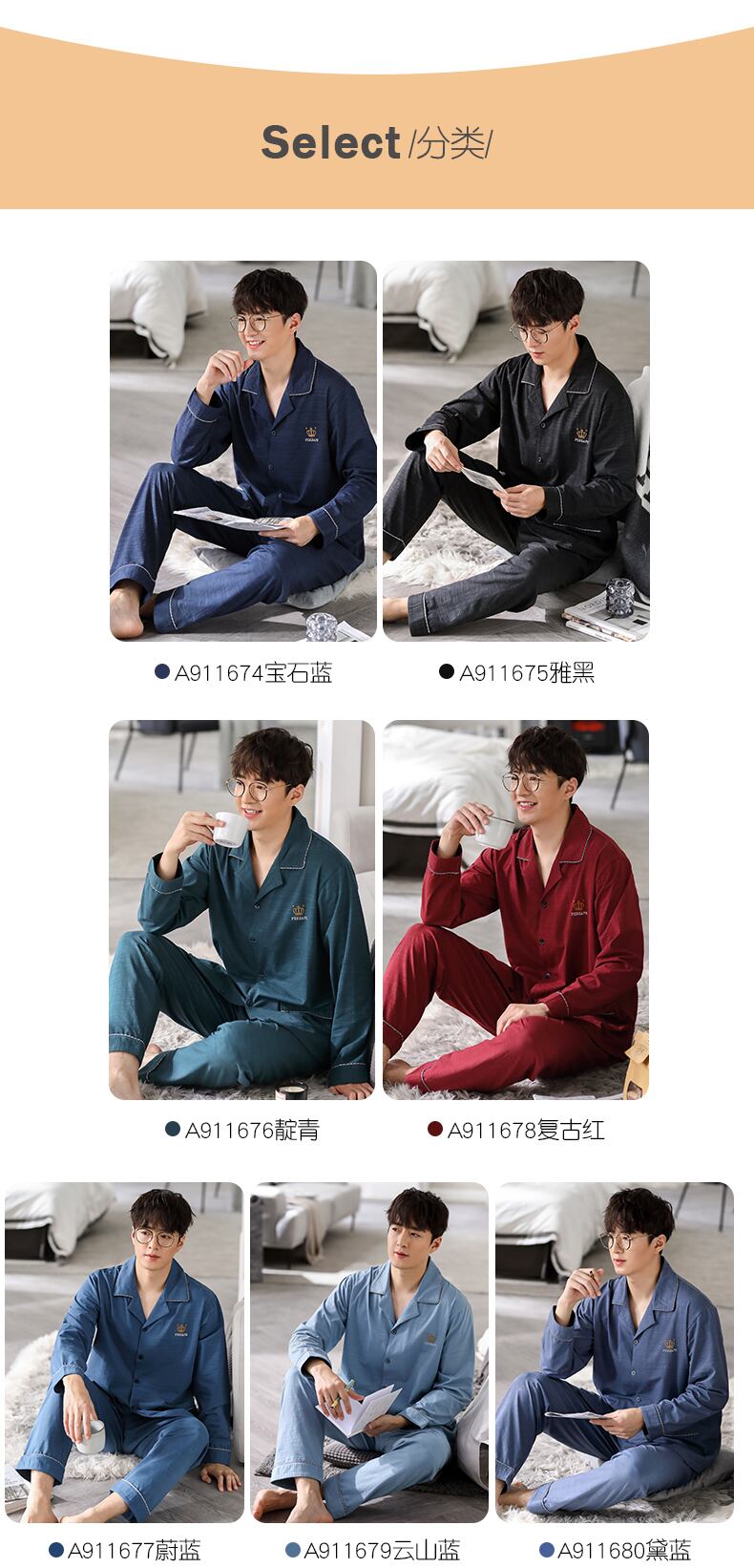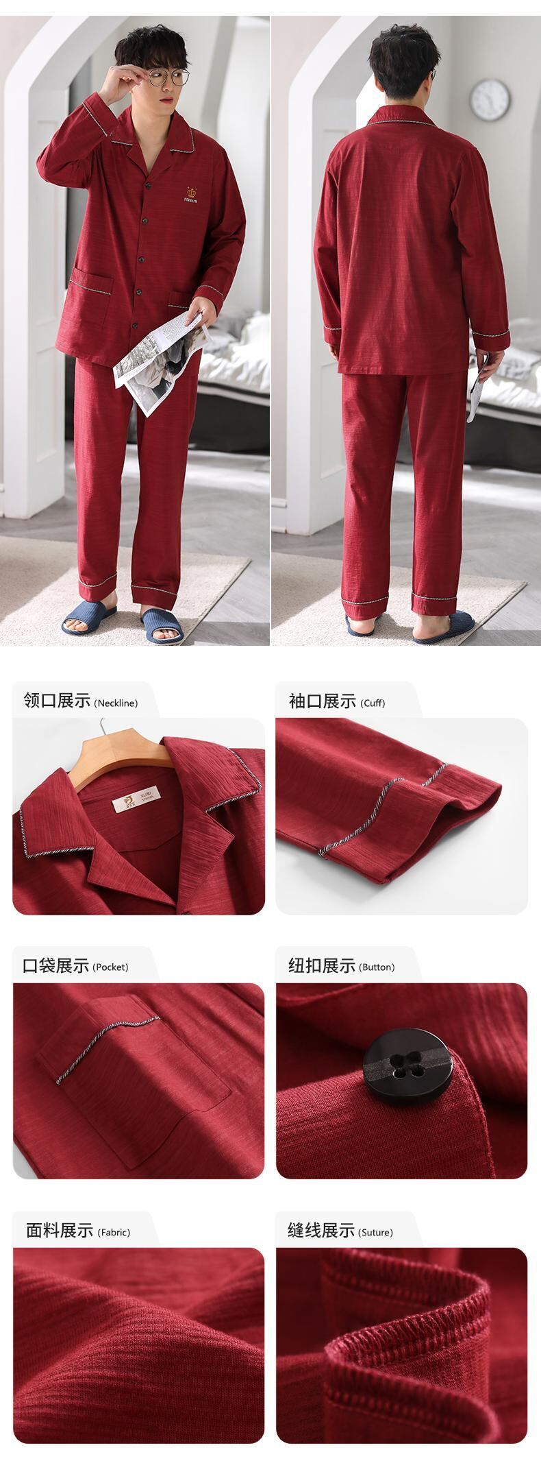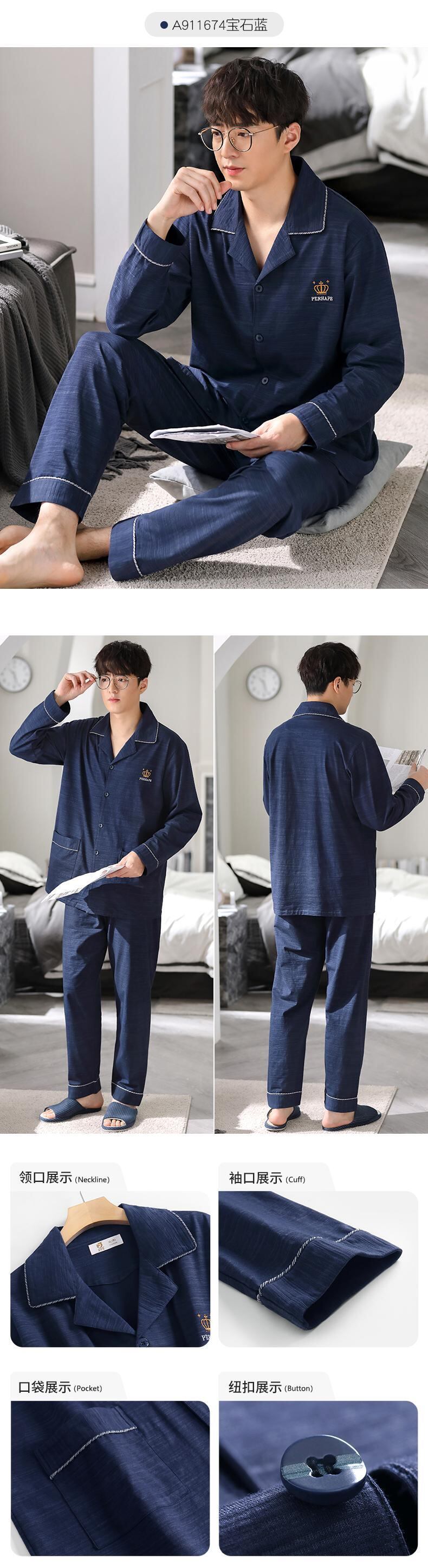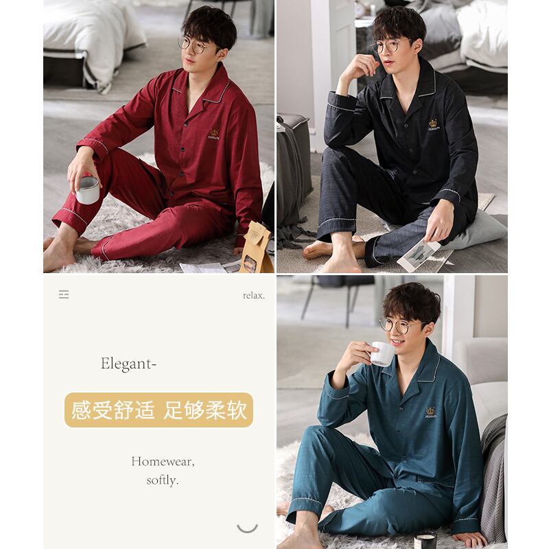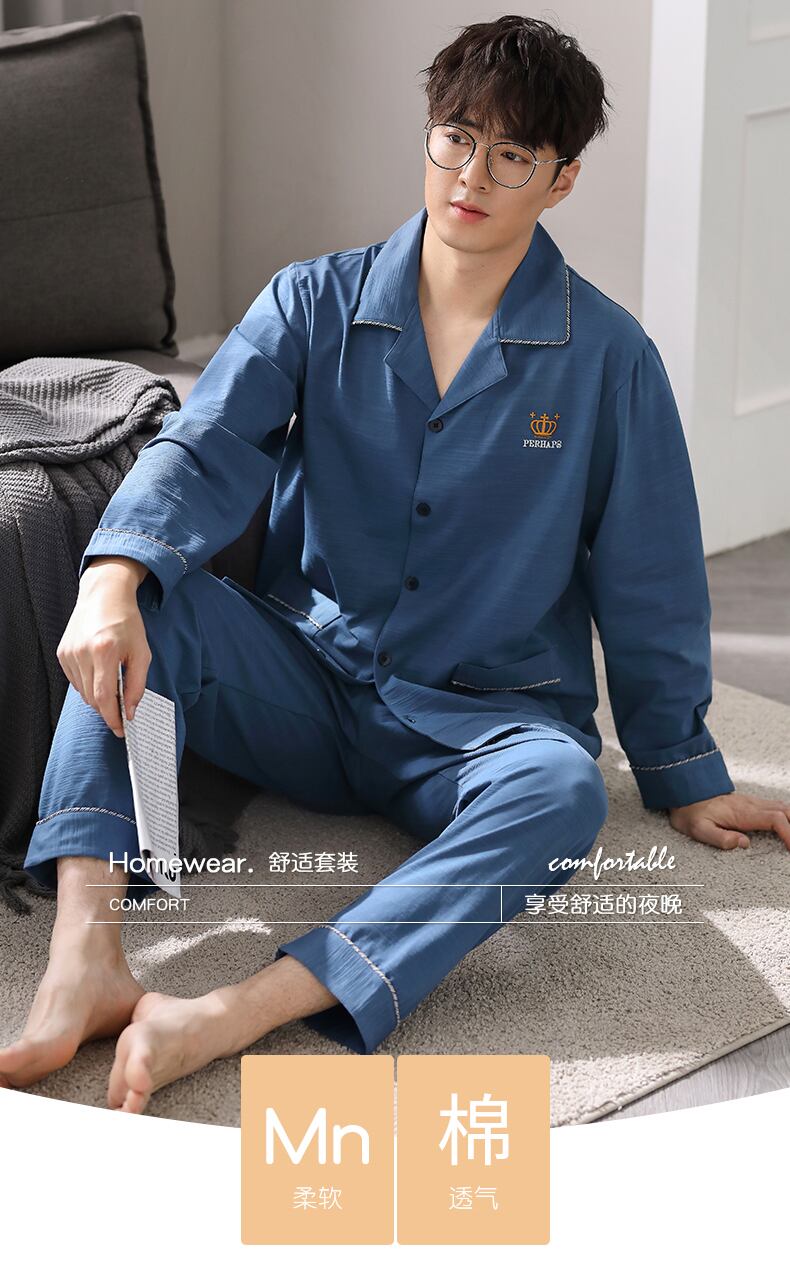 新しいパジャマメンズ春と秋のモデル春と秋の綿長袖家庭服フォーシーズンズスーツ jial48522667599