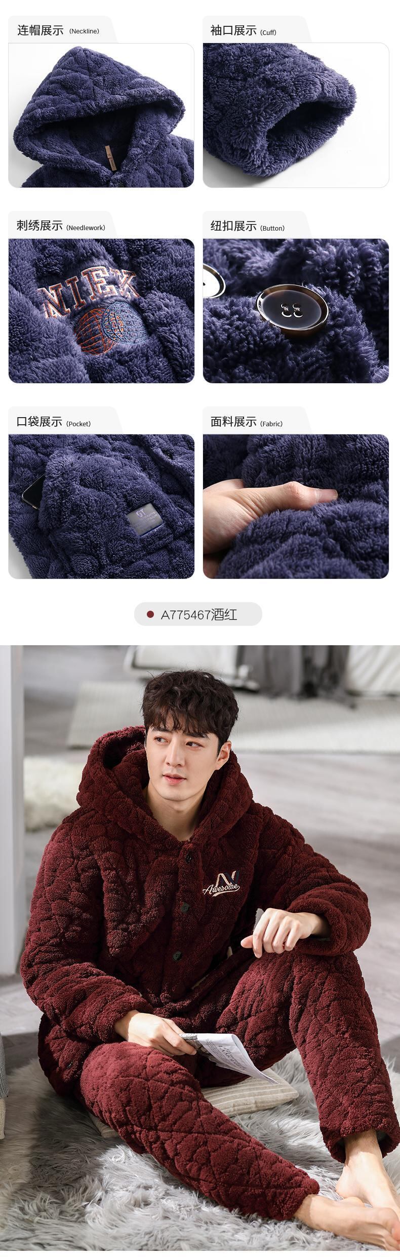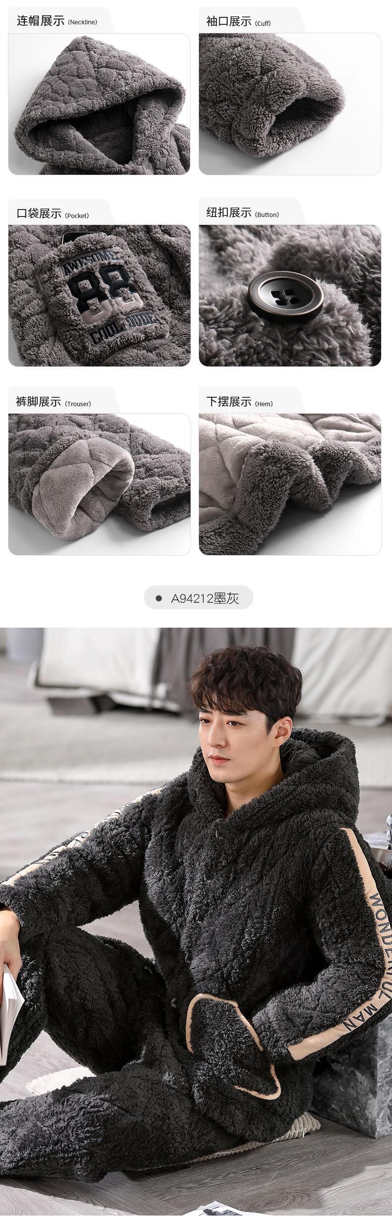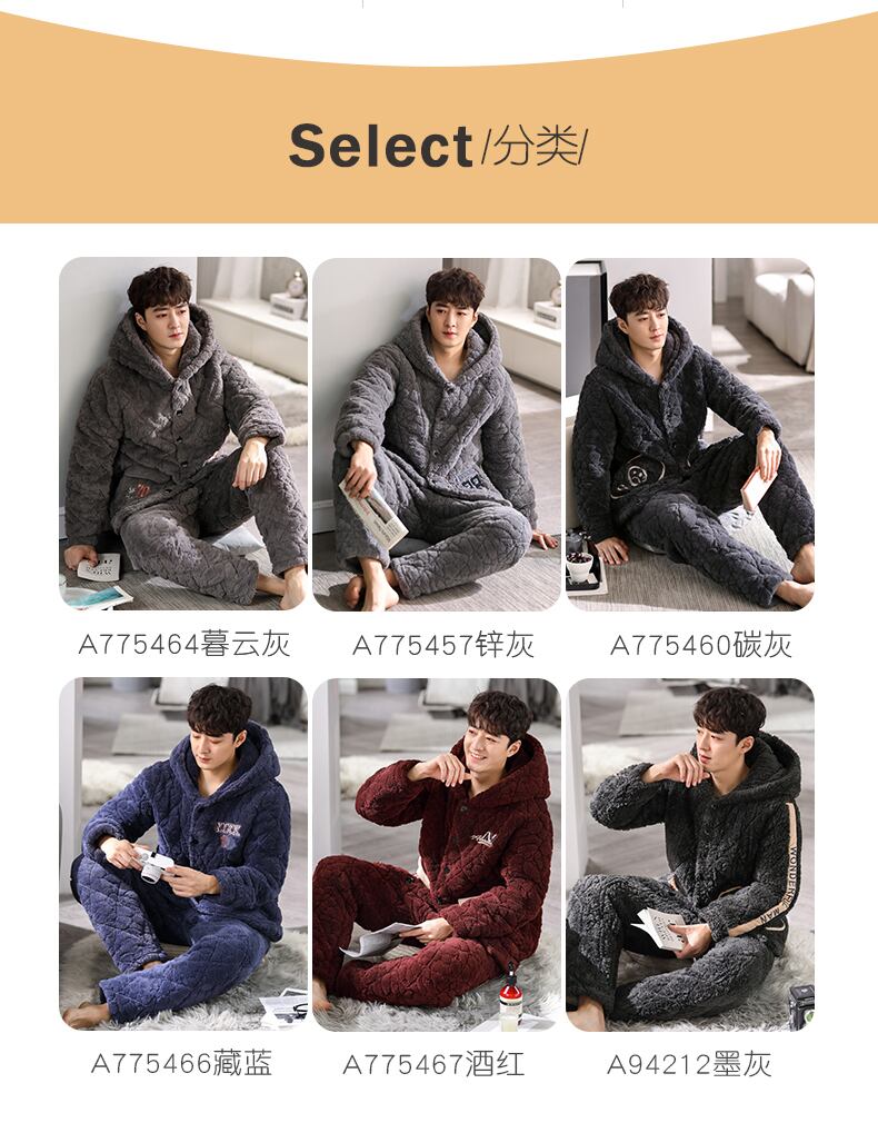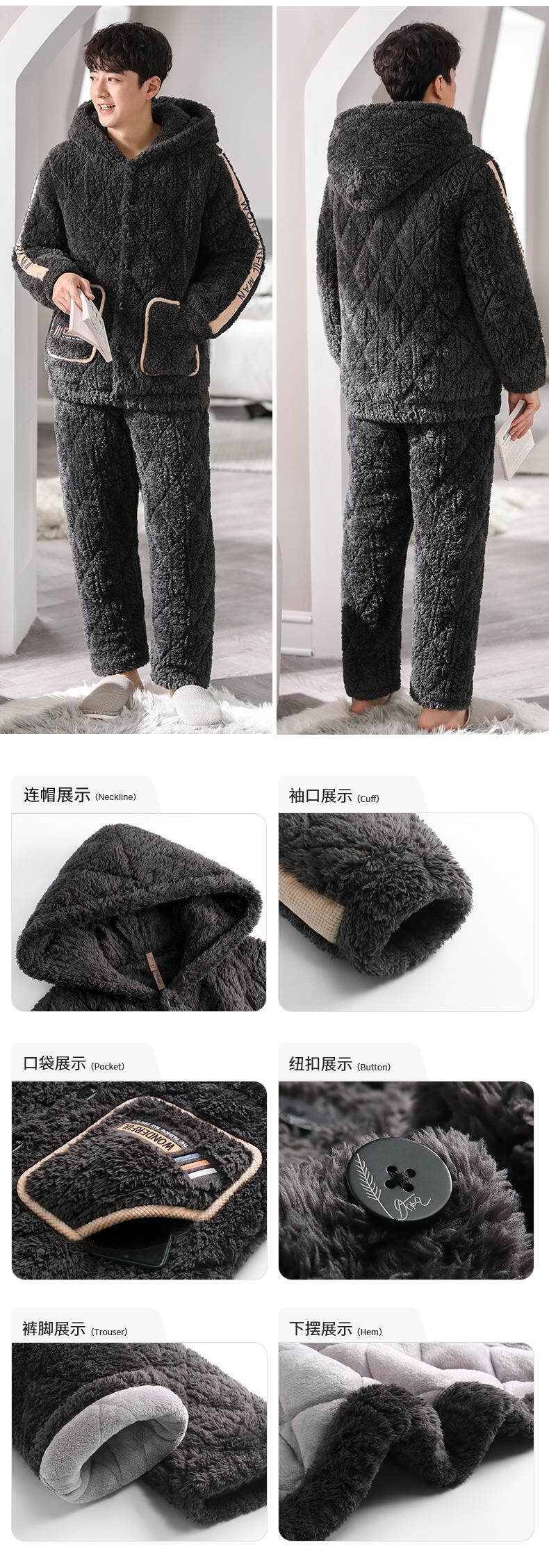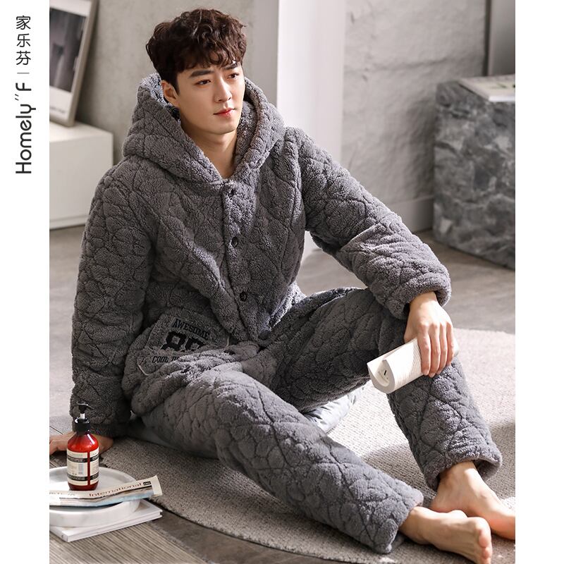 パジャマメンズ冬3層厚手超厚キルティングコーラルベルベットプラスベルベットフランネルホームサービス冬秋冬 jial88162726535