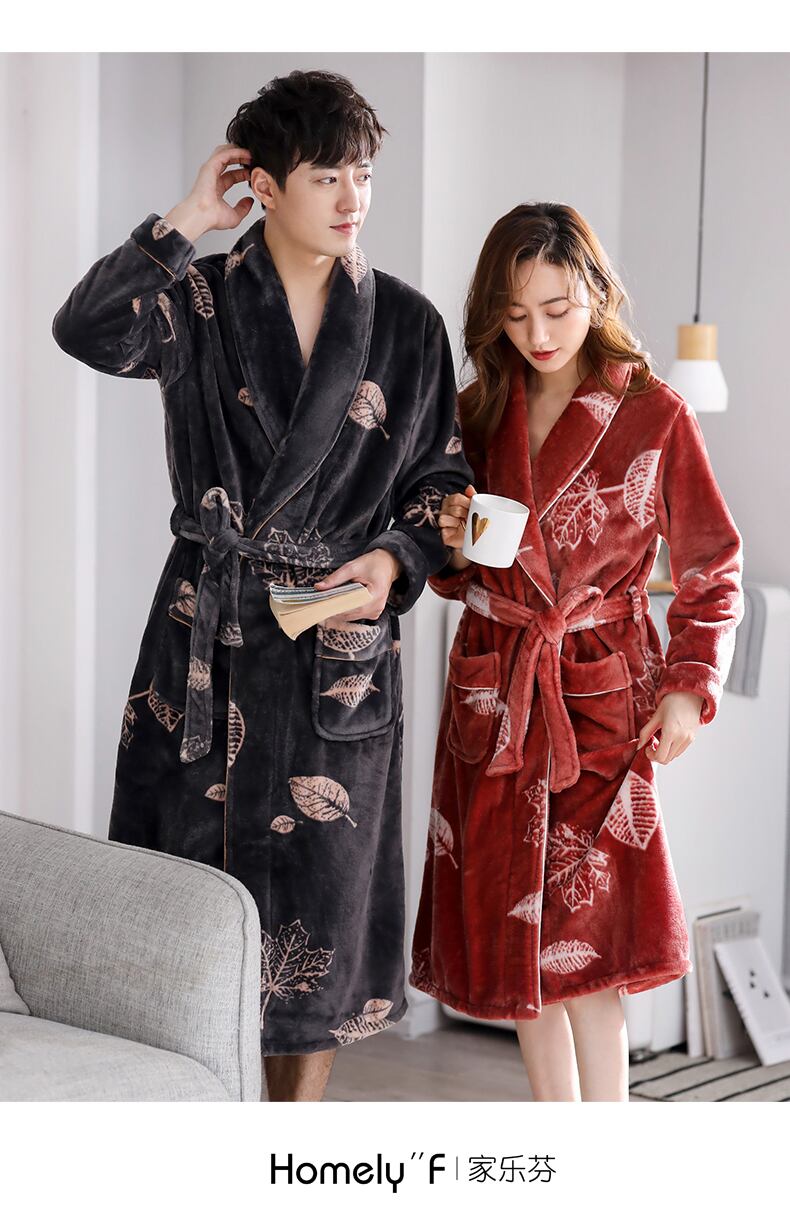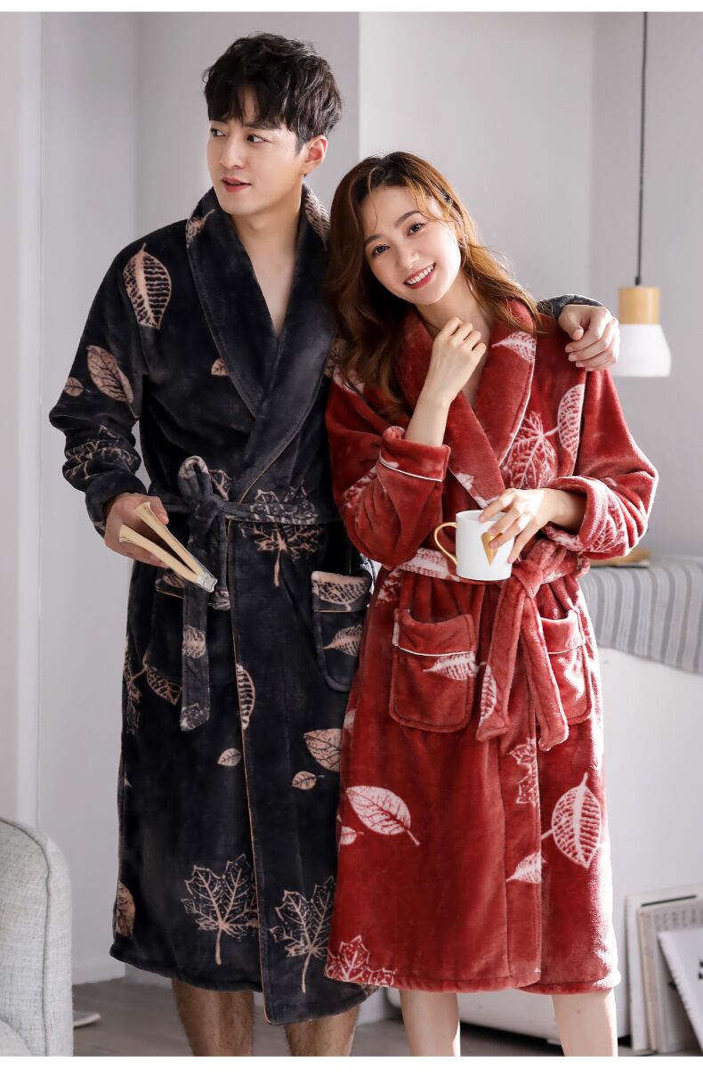 カップルのナイトガウンの男性の秋と冬のフランネルは、暖かい長いパジャマとベルベットの冬の女性のコーラルフリースのバスローブを厚くしました jial77129086048