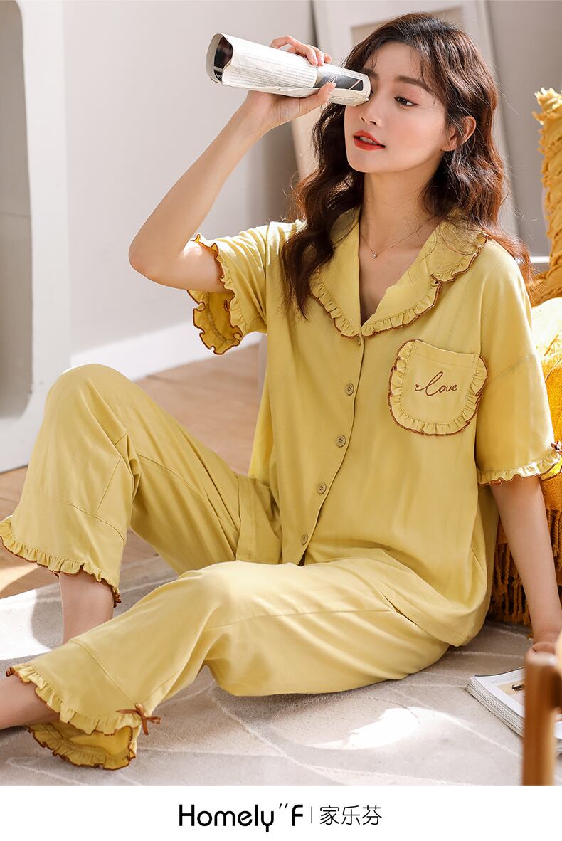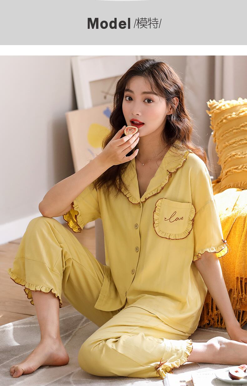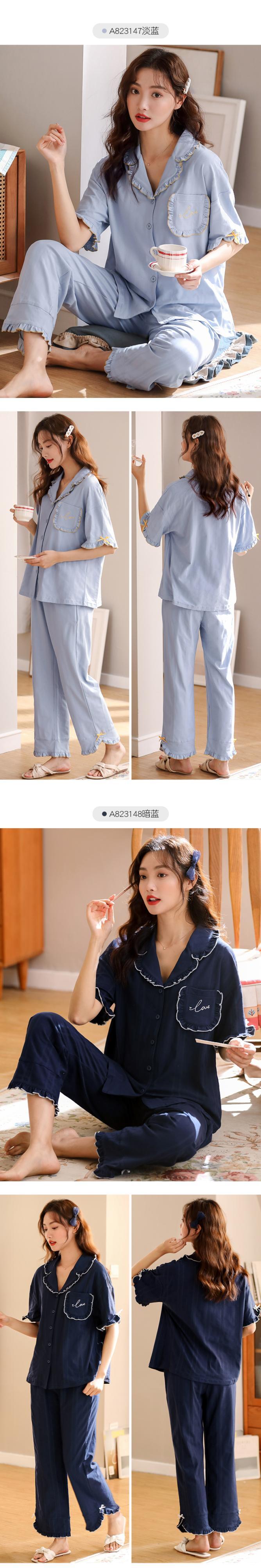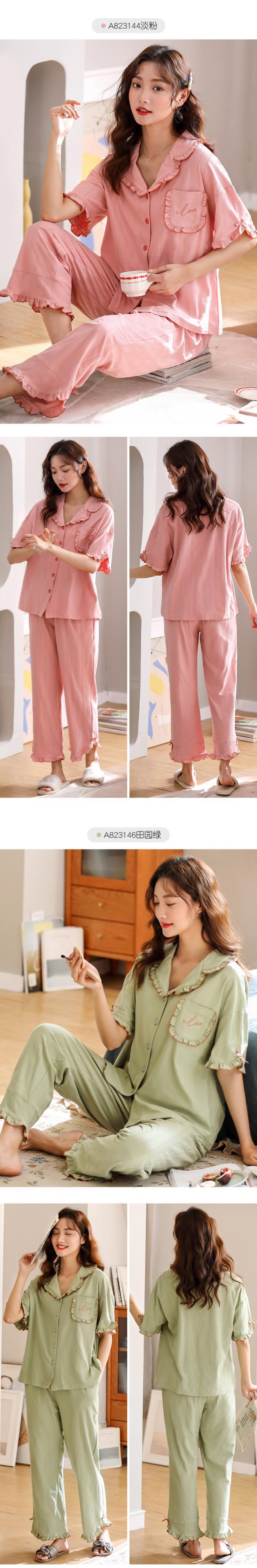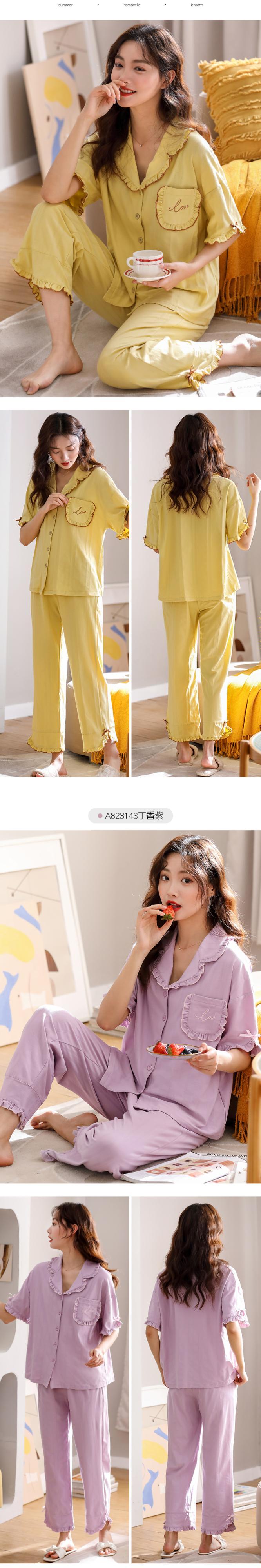 2021年の新しいパジャマレディース夏綿半袖ズボン家庭服夏薄綿かわいいスーツ jial28546964201