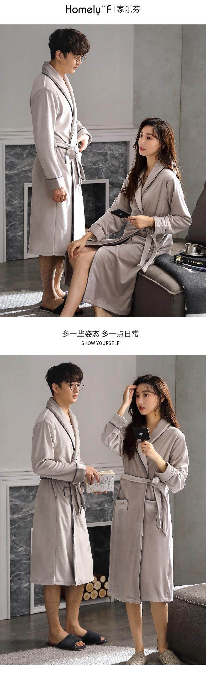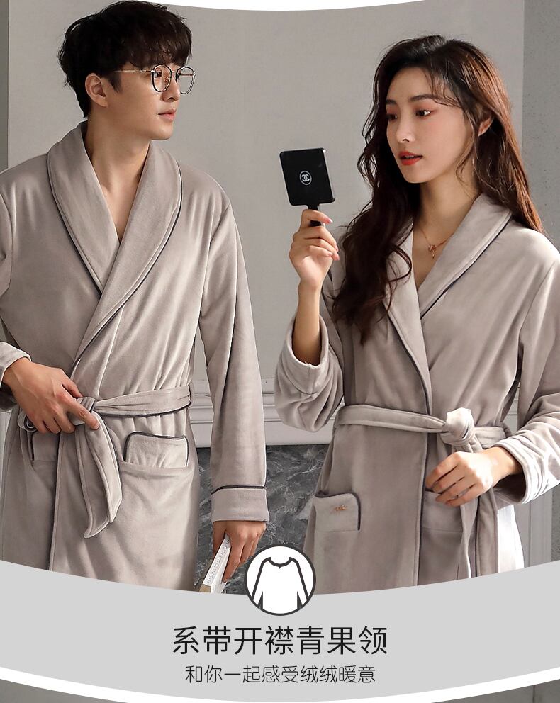 カップルナイトガウンメンズバスローブレディースパジャマ秋冬フランネルシックニングプラスベルベットコーラルベルベットミドル丈春秋モデル jial7655805112