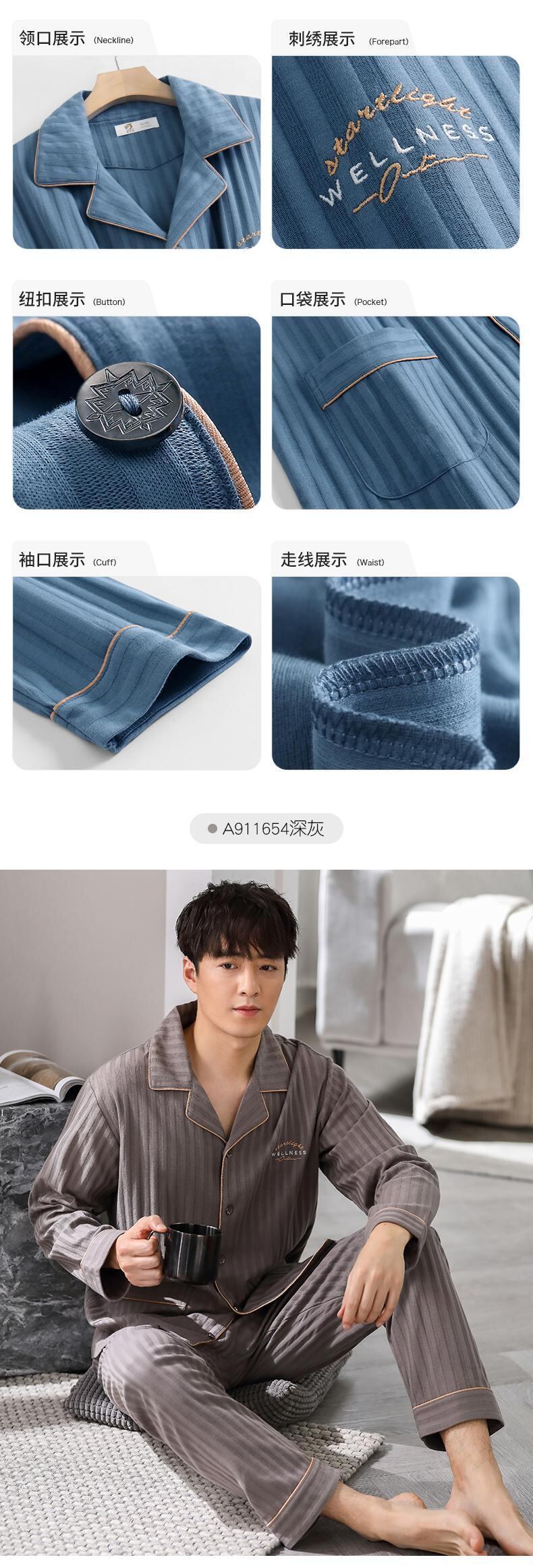 Carrefineパジャマメンズ春秋秋コットン長袖家庭服コットン秋冬四季秋スーツ jial31752966662