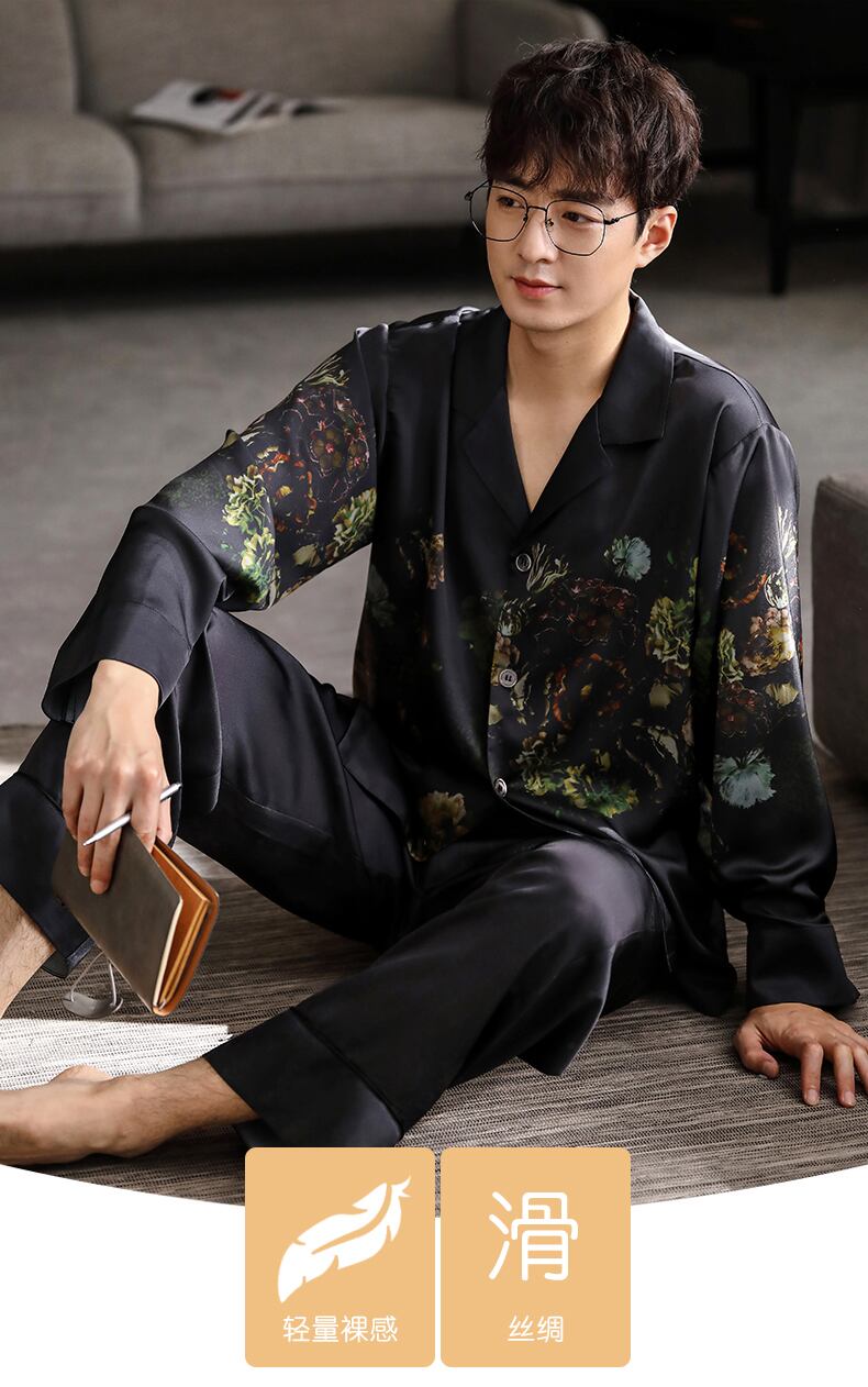 Carrefineパジャマメンズシルクアイスシルク長袖薄春・秋モデル秋シミュレーションシルクフォーシーズンズホームウェア jial63277317031