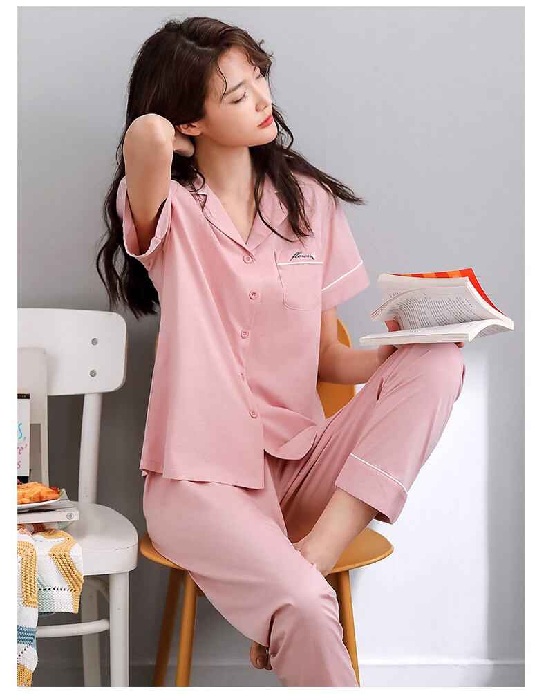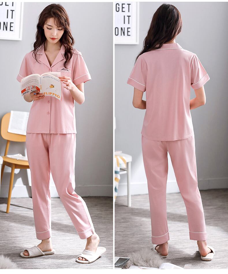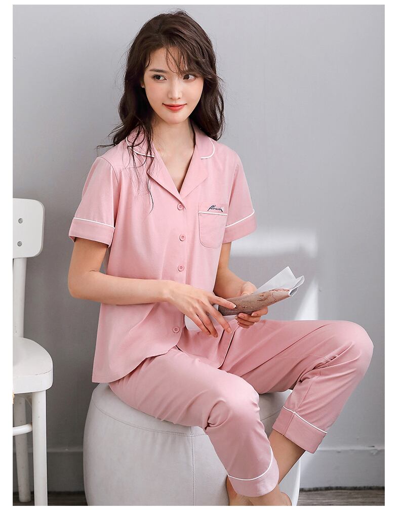 マーセル加工コットンパジャマレディースサマーコットン半袖パンツラウンジウェアサマーシンコットンカーディガンツーピーススーツ jial82041410427