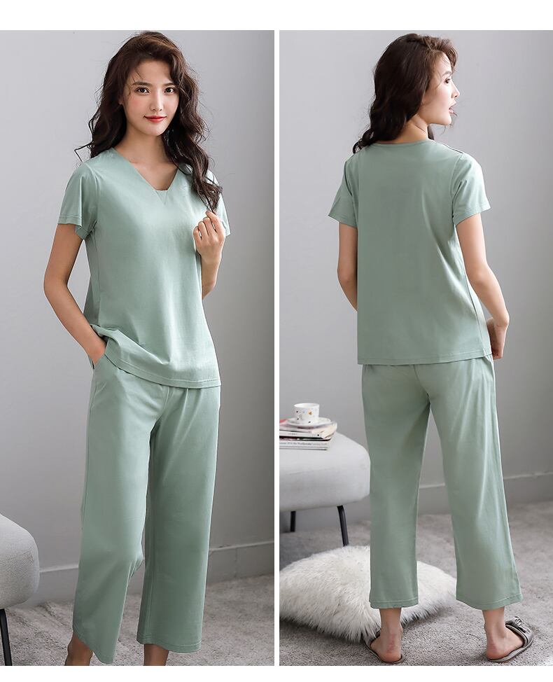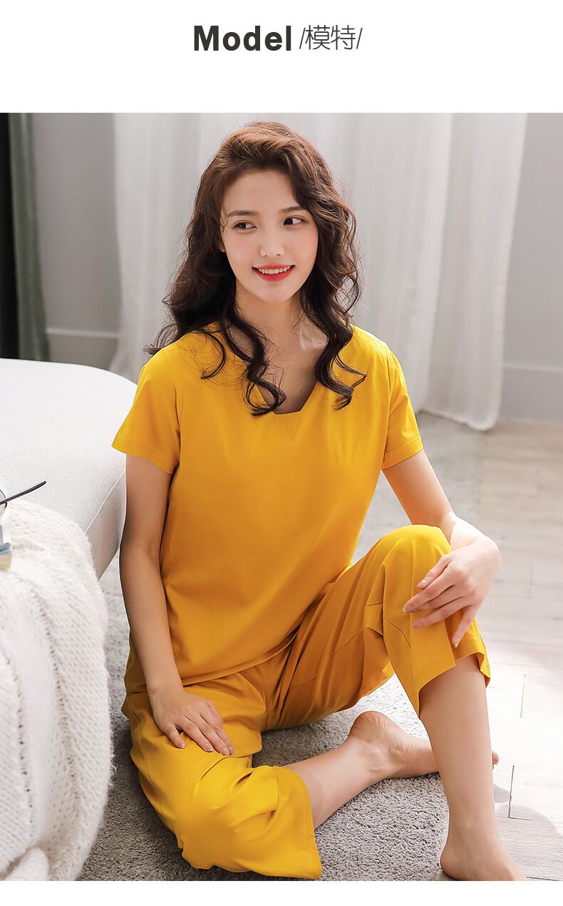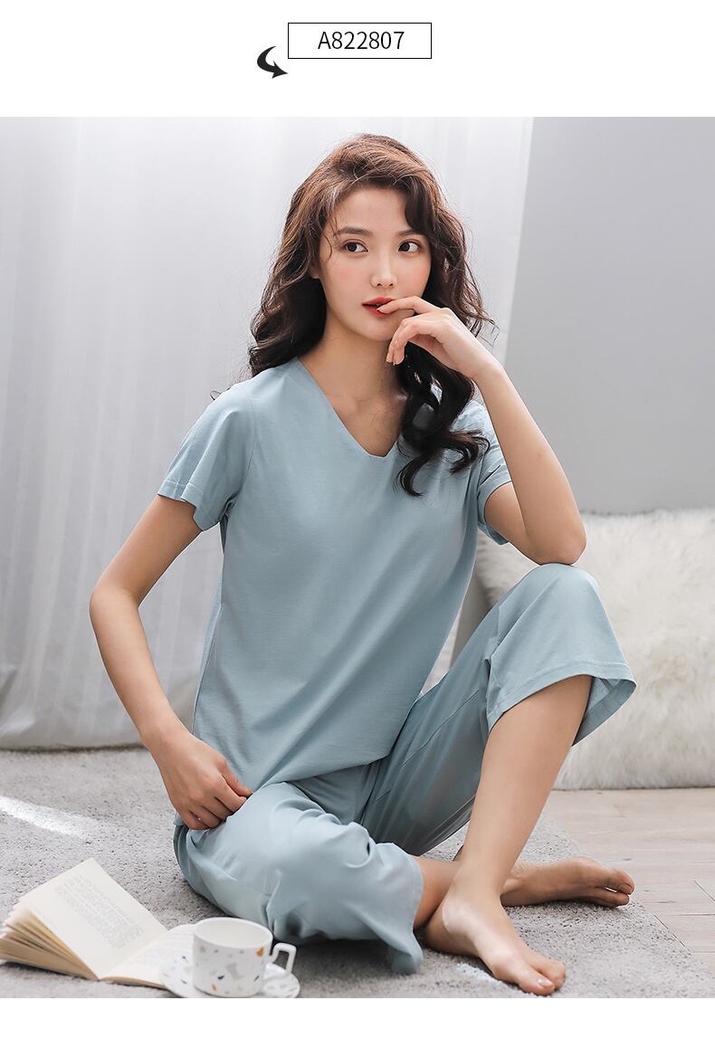 シルケット加工された綿のパジャマレディース夏の綿半袖ズボン家庭用品夏の胸パッド付きの薄い綿は外で着用することができます jial74636935132
