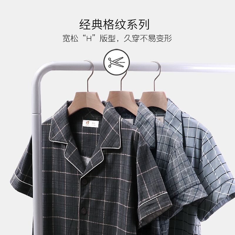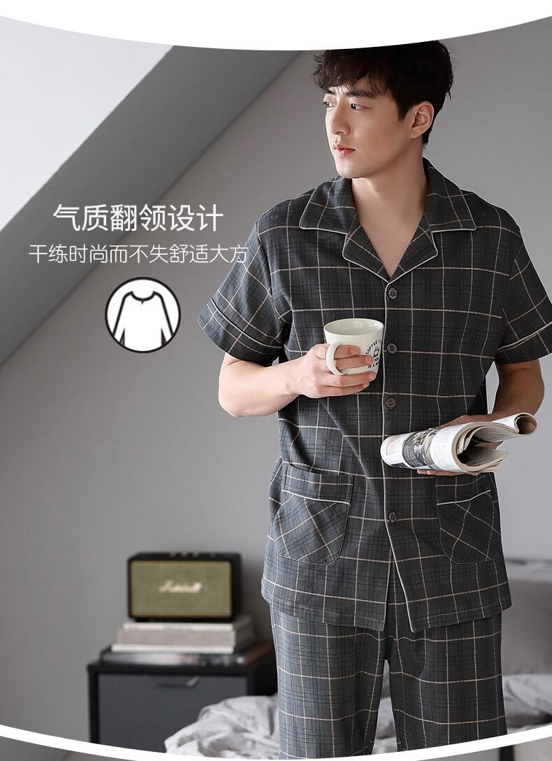 パジャマメンズサマーコットン半袖ショーツカーディガンホームウェアメンズメンズサマー薄手コットンスーツ jial79252973645