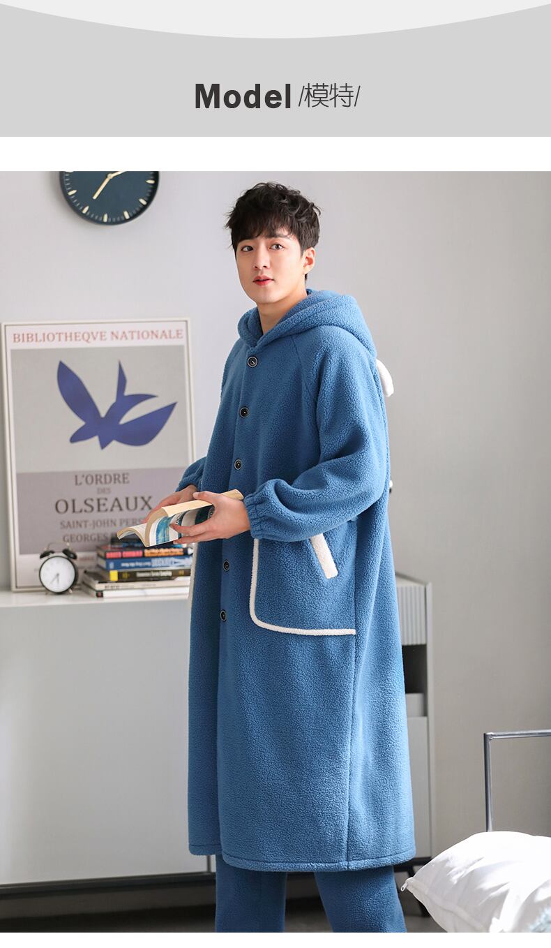 ナイトガウンメンズパジャマ冬キルティング秋冬コーラルフリース厚手プラスベルベットフランネル冬ロングスーツ jial92319686329