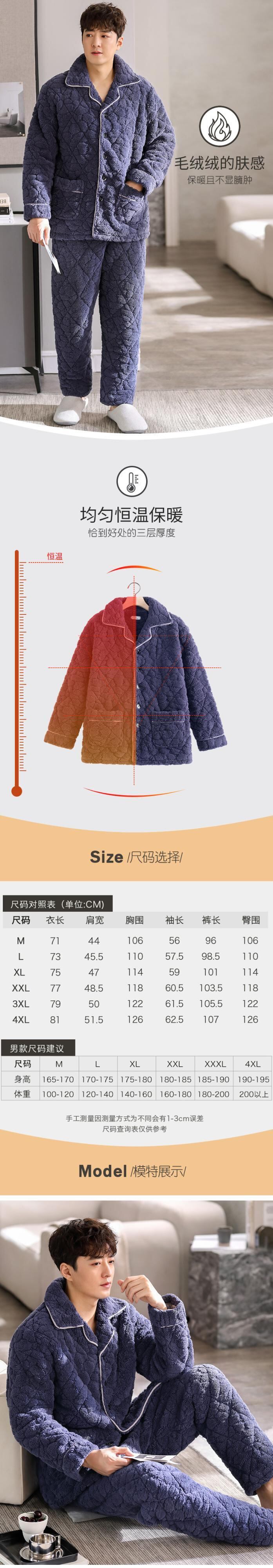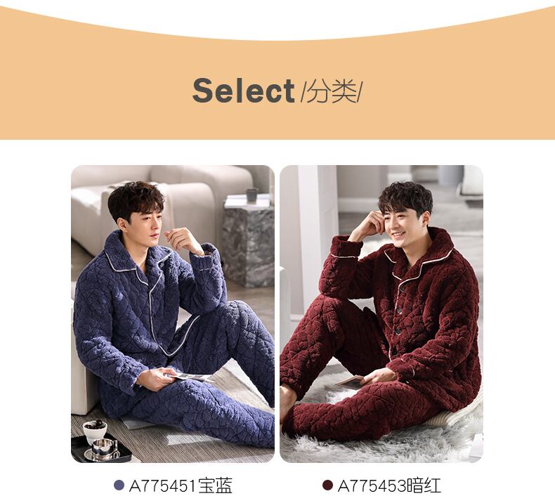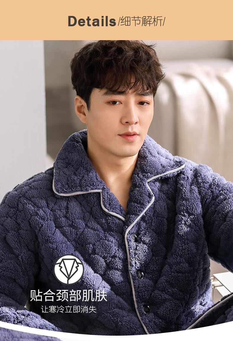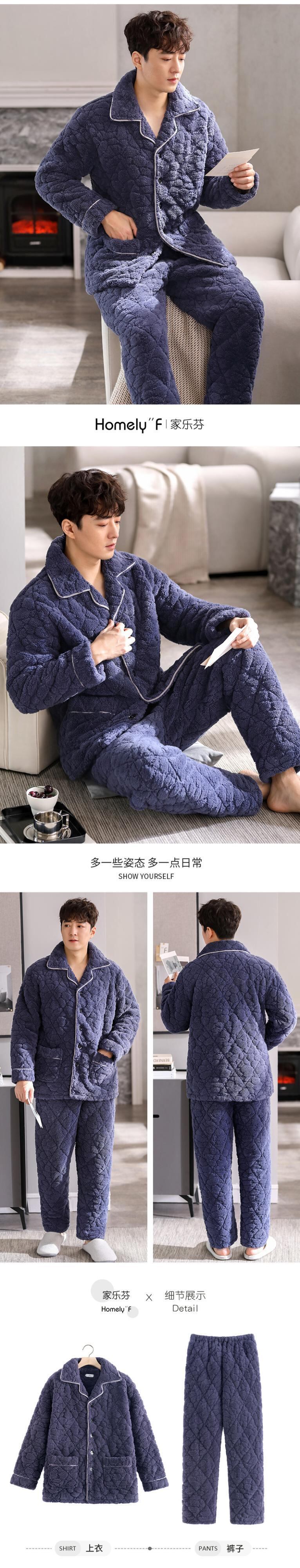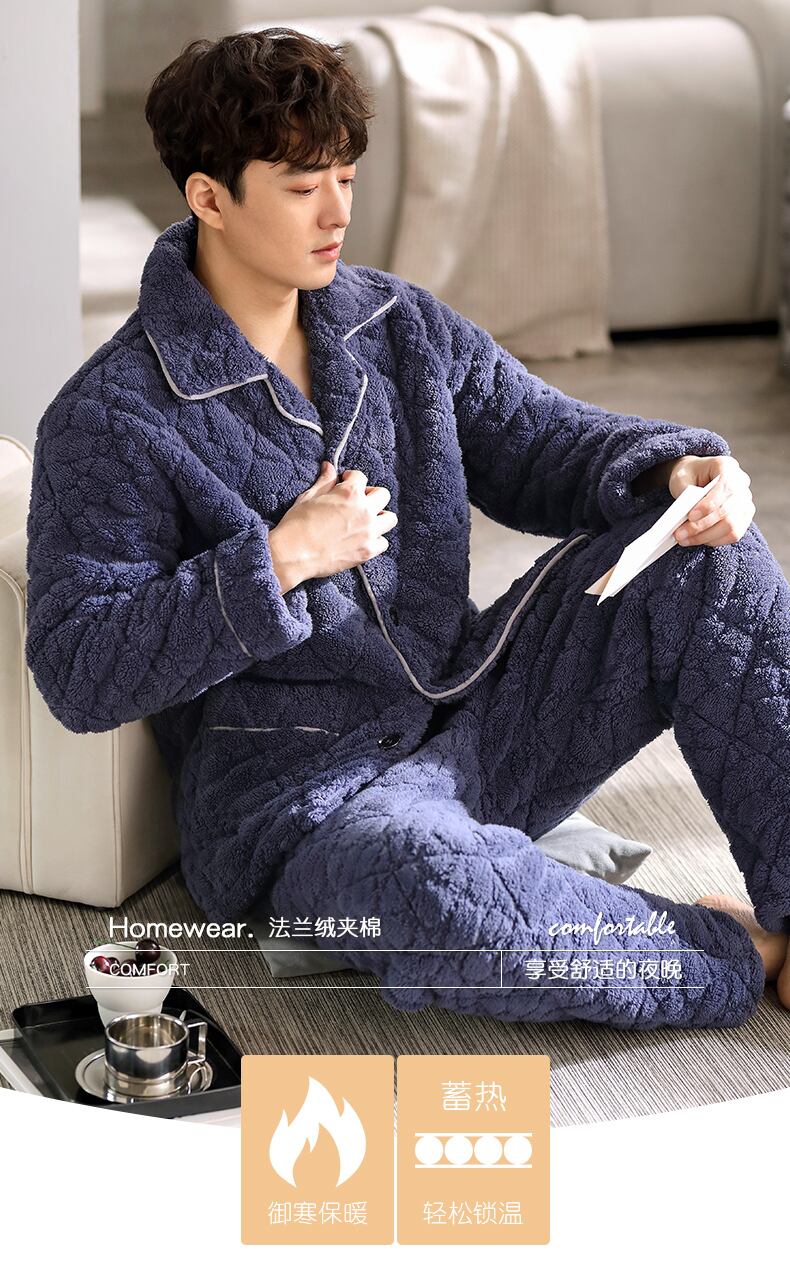 パジャマメンズ冬冬3層厚手超厚キルティングコーラルフリースとベルベットフランネルホームサービス秋冬モデル jial24581358224