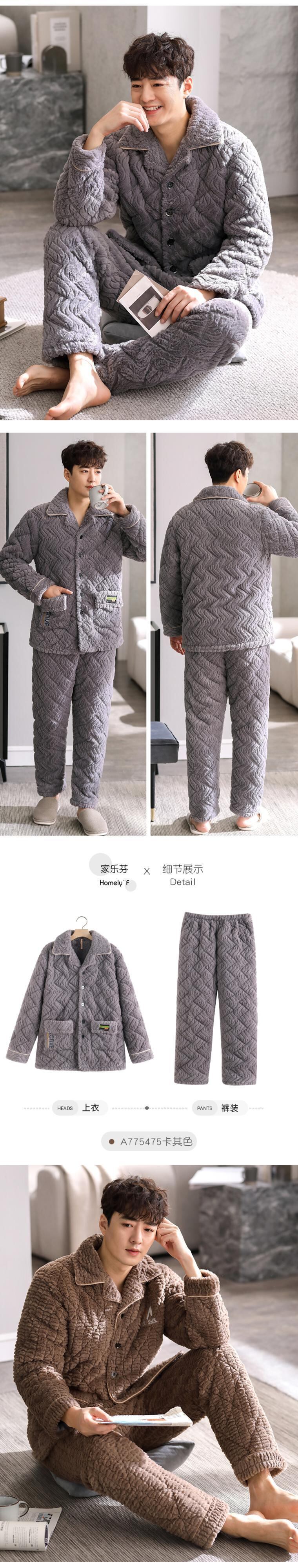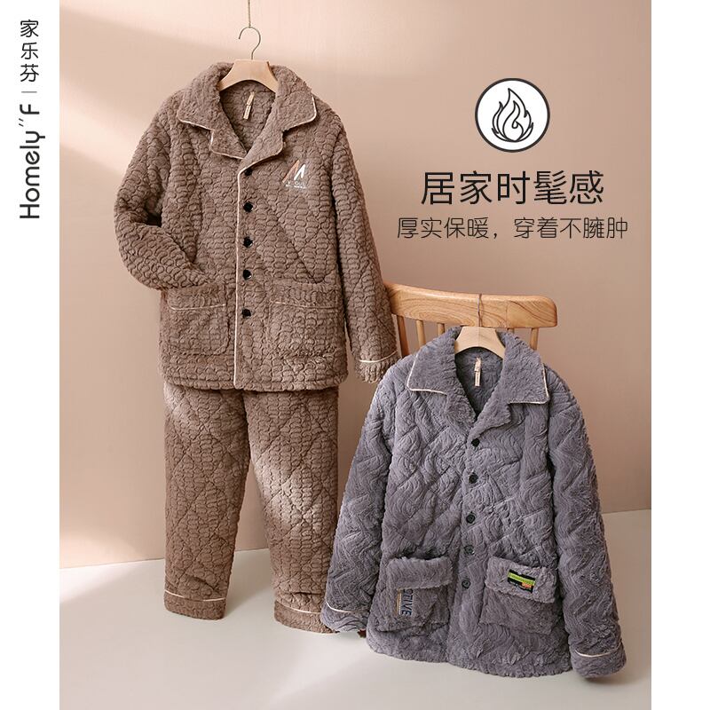 パジャマメンズ冬冬3層厚手超厚キルティングコーラルフリースとベルベットフランネルホームサービス秋冬モデル jial22878328345