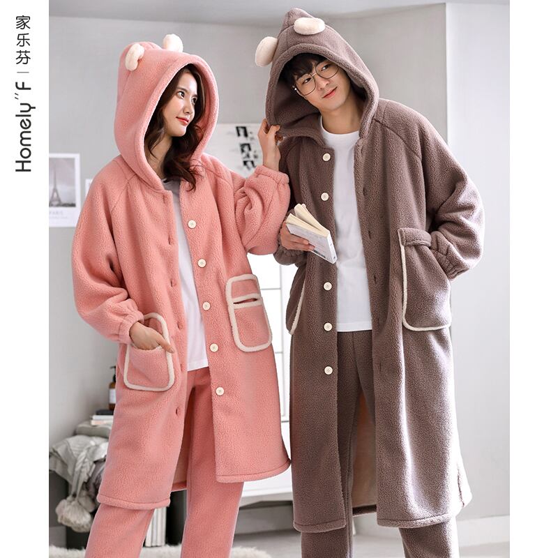 カップルナイトガウンレディースパジャマ冬のフランネル肥厚プラスベルベットコーラルベルベット秋冬ホームサービスメンズロングスーツ jial85095876382