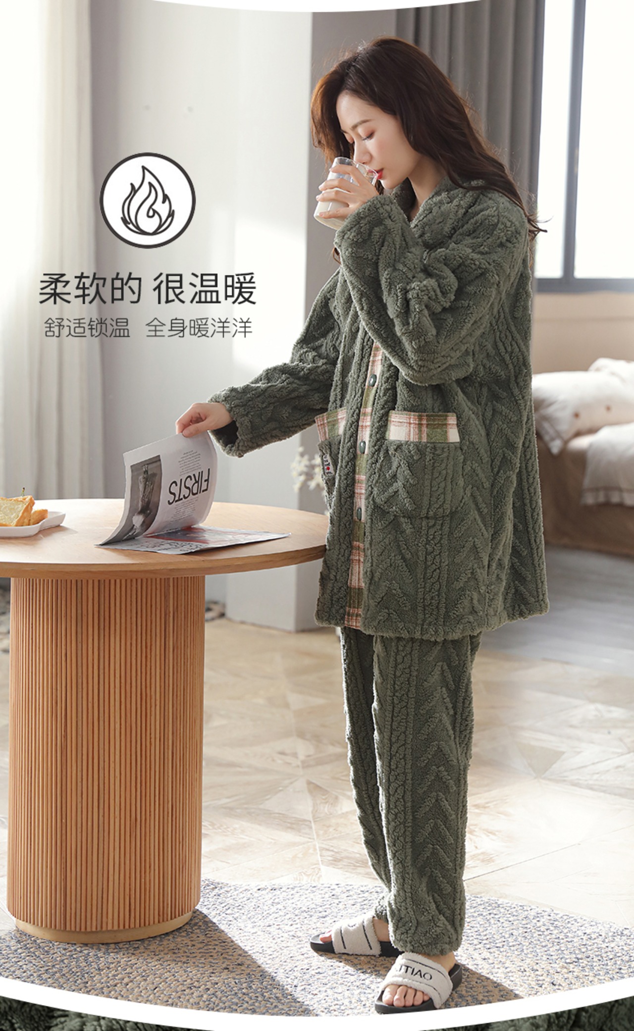 パジャマ秋冬コーラルフリースシックニングとフランネルフランネルホームウェア冬ミドル丈レディーススーツ jial14319893474