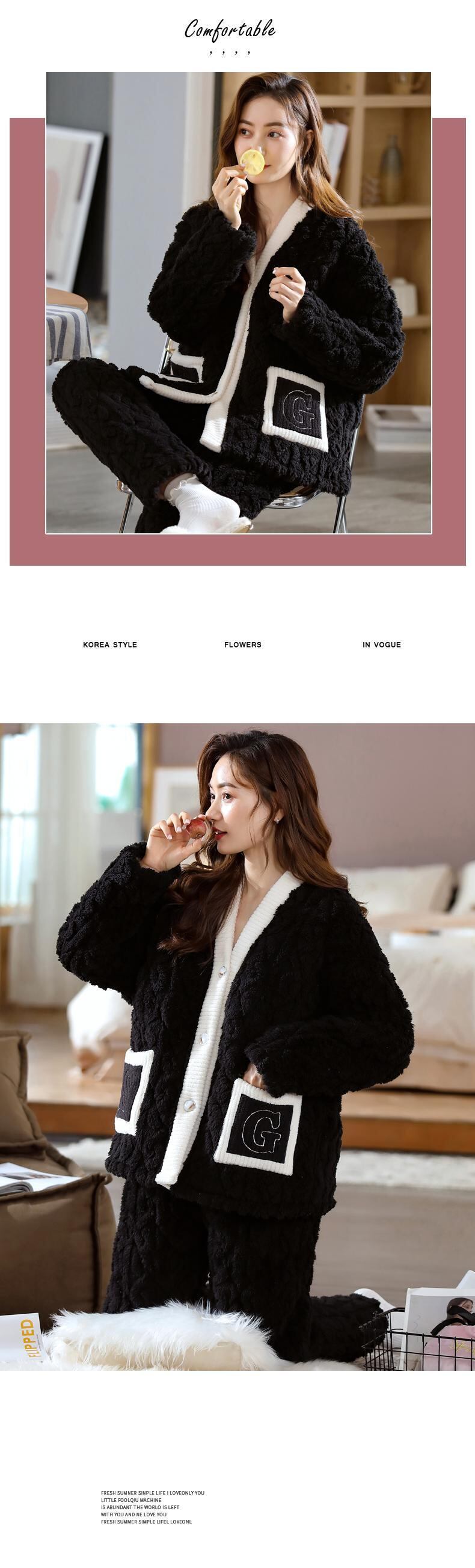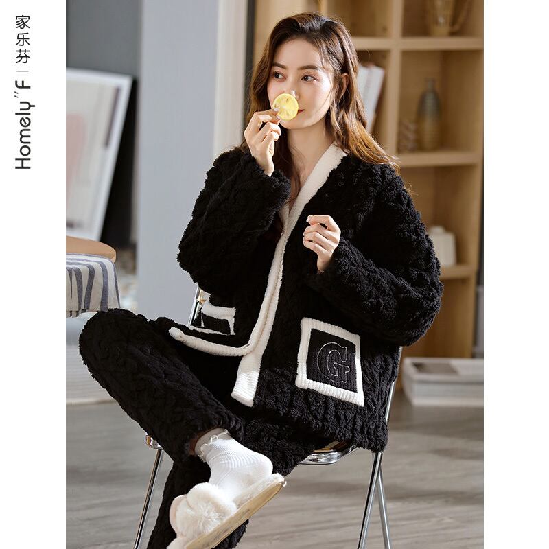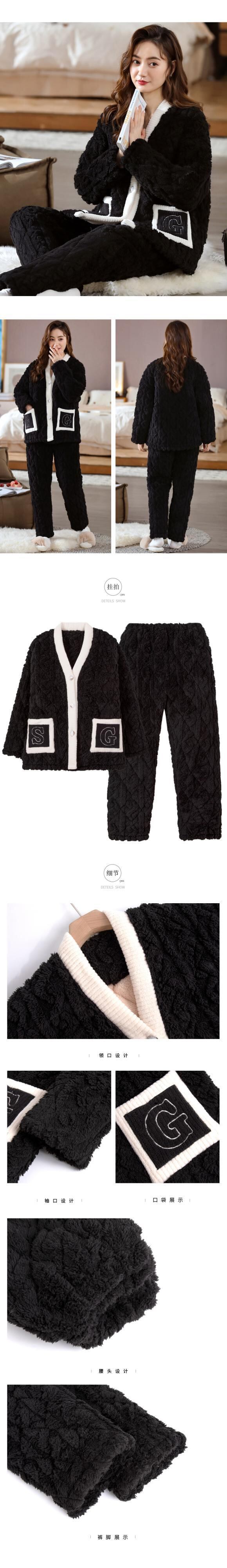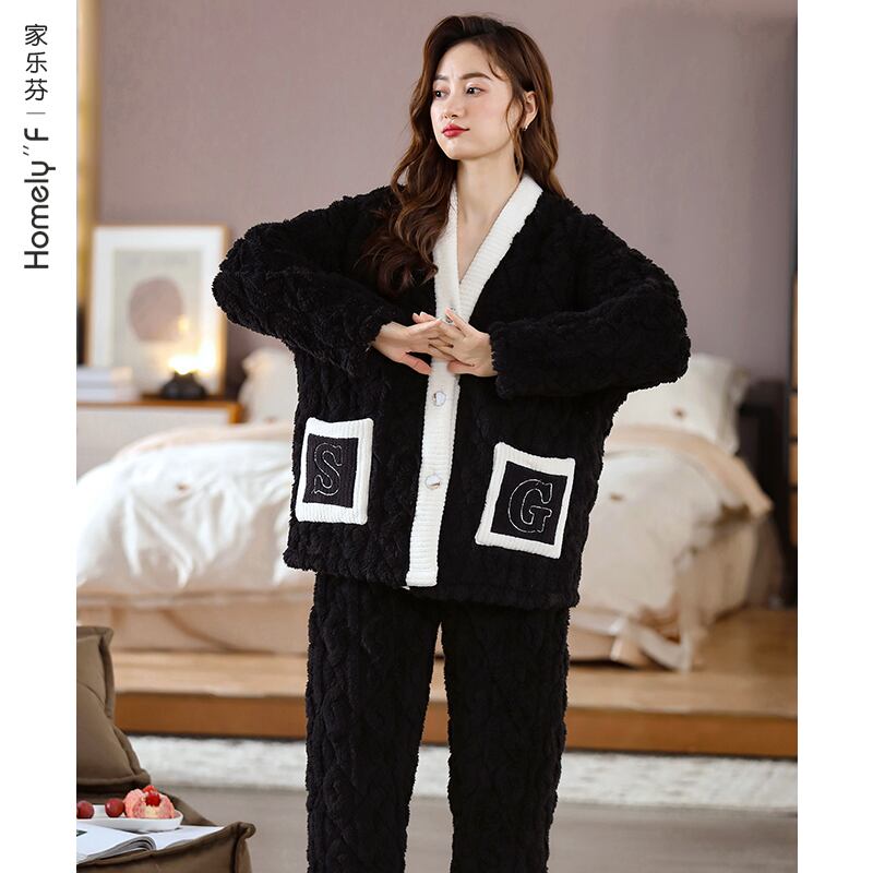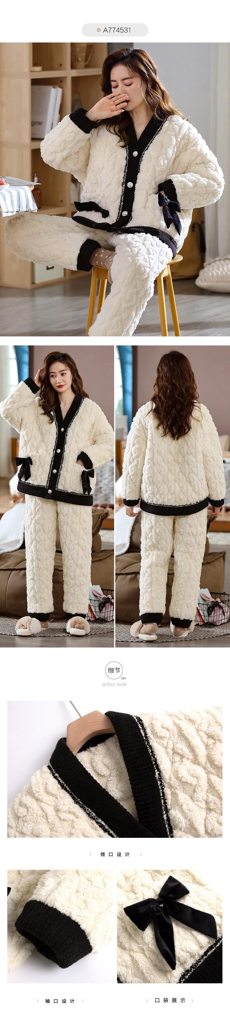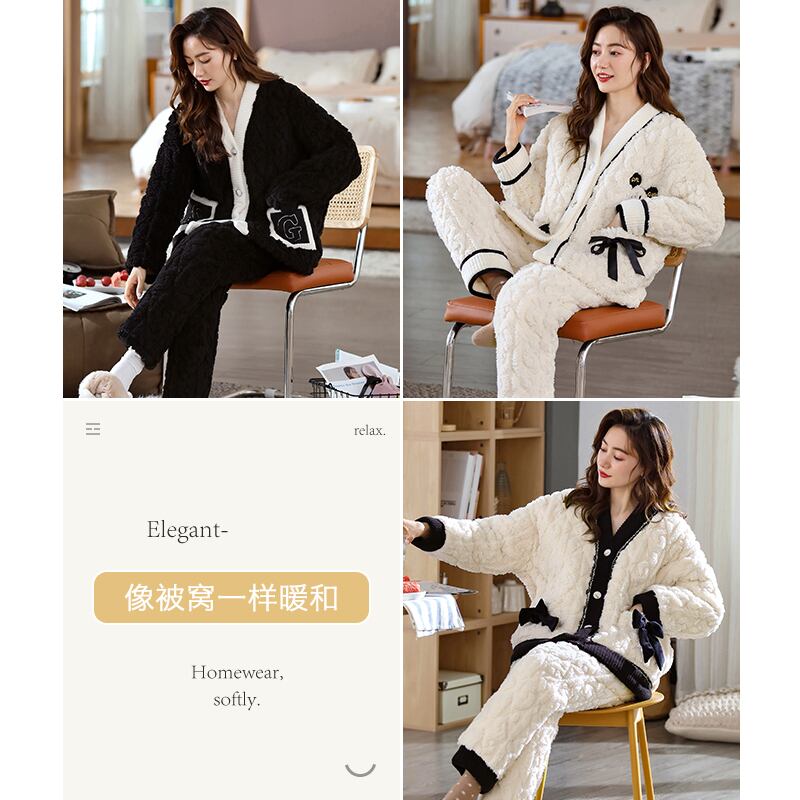 パジャマレディース冬3層厚手のコーラルフリースキルトジャケットフランネルとベルベットの暖かい家庭服秋と冬の冬 jial8052294309