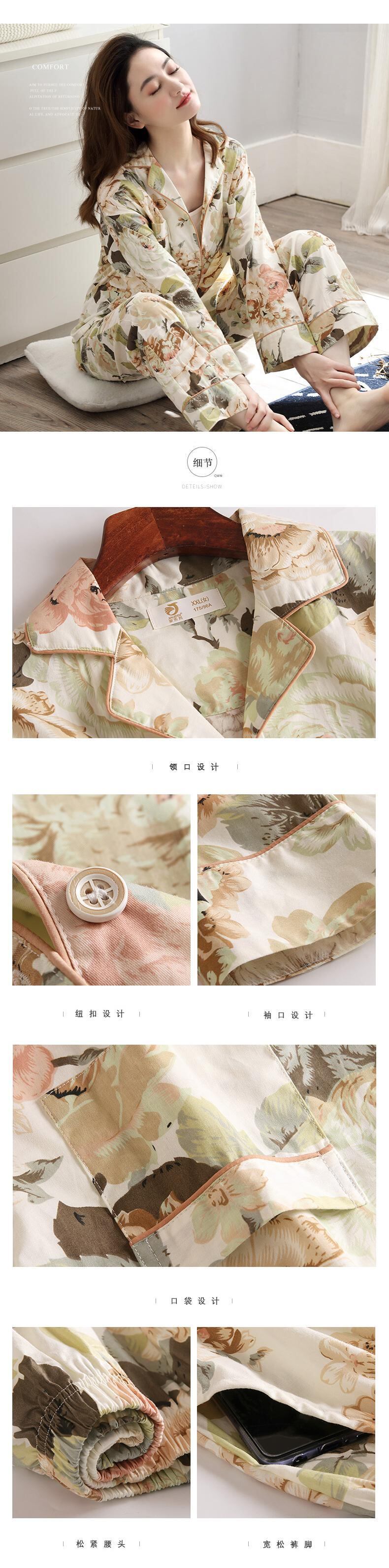 パジャマ春春夏春綿長袖ホームウェア綿綿ガーゼ春と秋の薄いお母さん jial13161177898