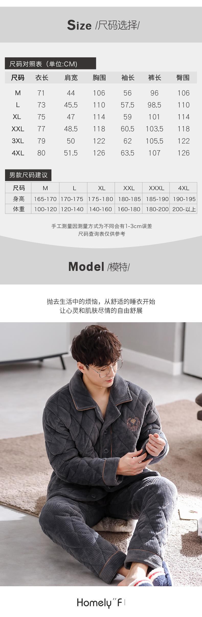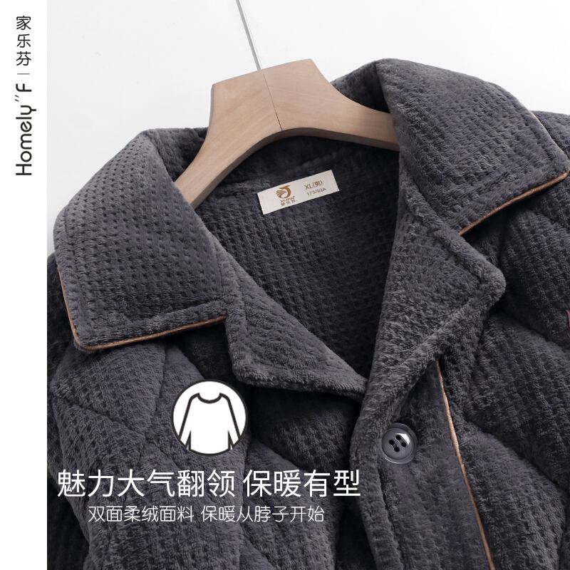 パジャマメンズウィンター3層厚手キルティングコーラルフリースとベルベットウォームフランネルホームサービス秋冬 jial80606024382