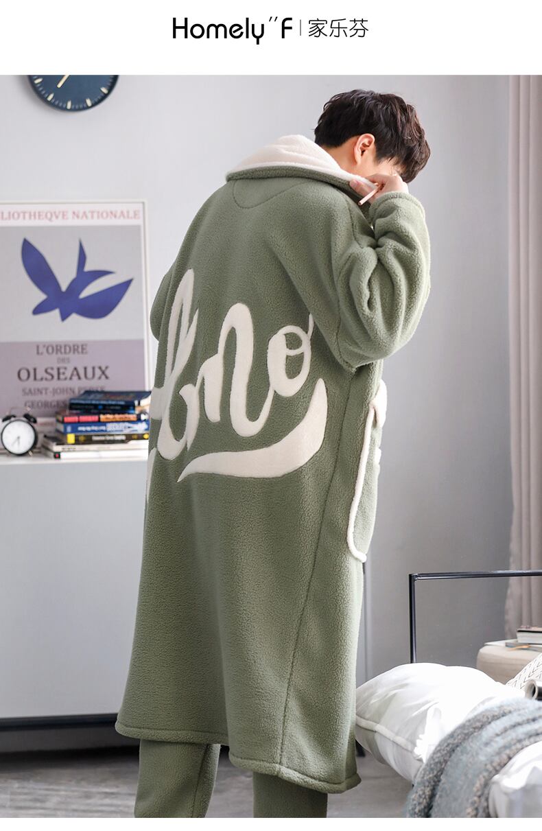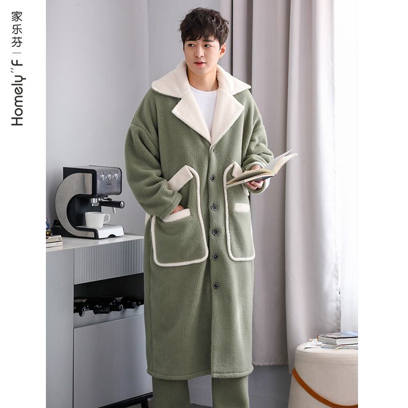 ナイトガウンメンズパジャマ冬キルティング秋冬コーラルフリース厚手プラスベルベットフランネル冬ロングスーツ jial5364234253