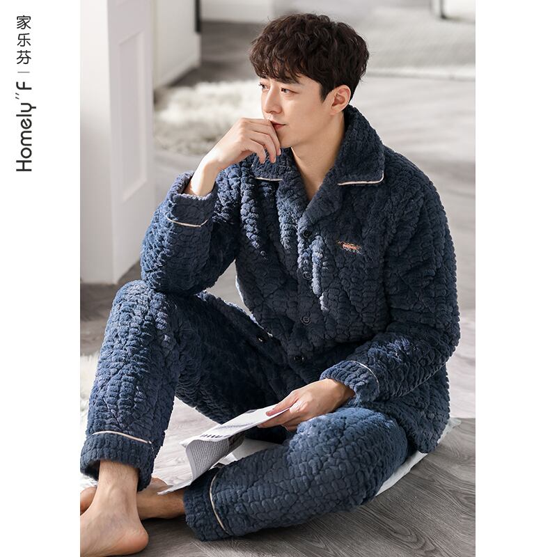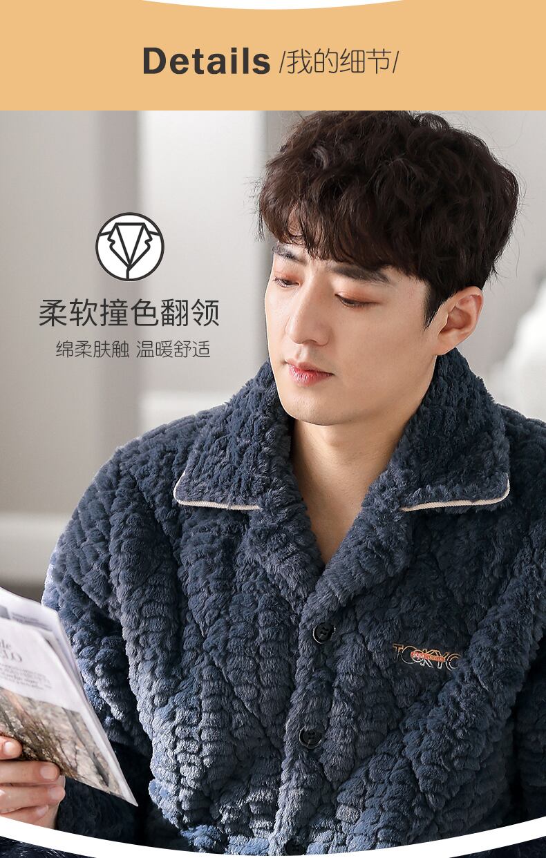 パジャマメンズ冬冬3層厚手超厚キルティングコーラルフリースとベルベットフランネルホームサービス秋冬モデル jial11475244735