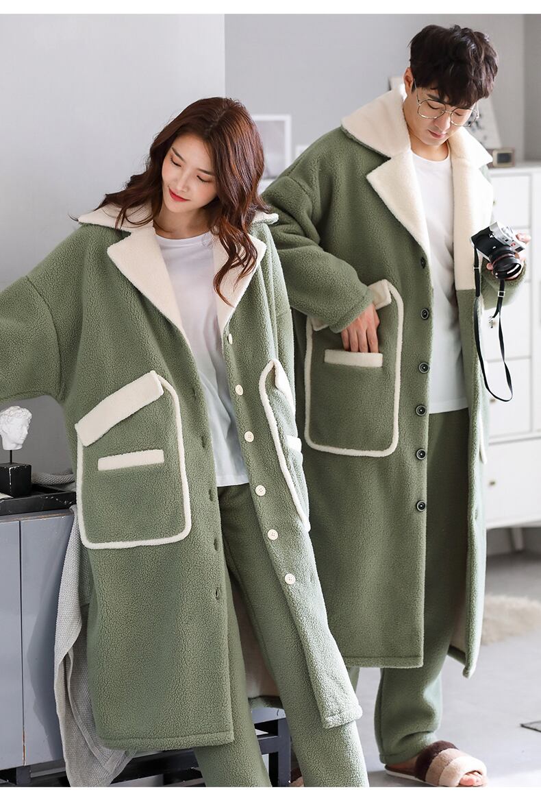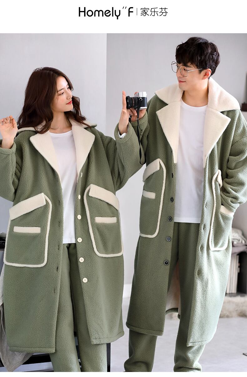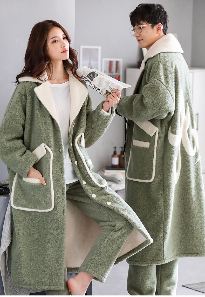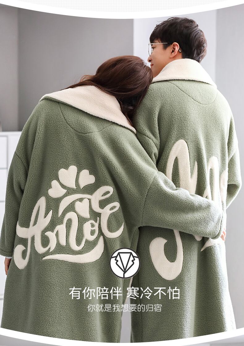 カップルナイトガウンレディースパジャマ冬のフランネル厚くプラスベルベットコーラルフリース秋と冬のホームサービスメンズロングスーツ jial64012829233