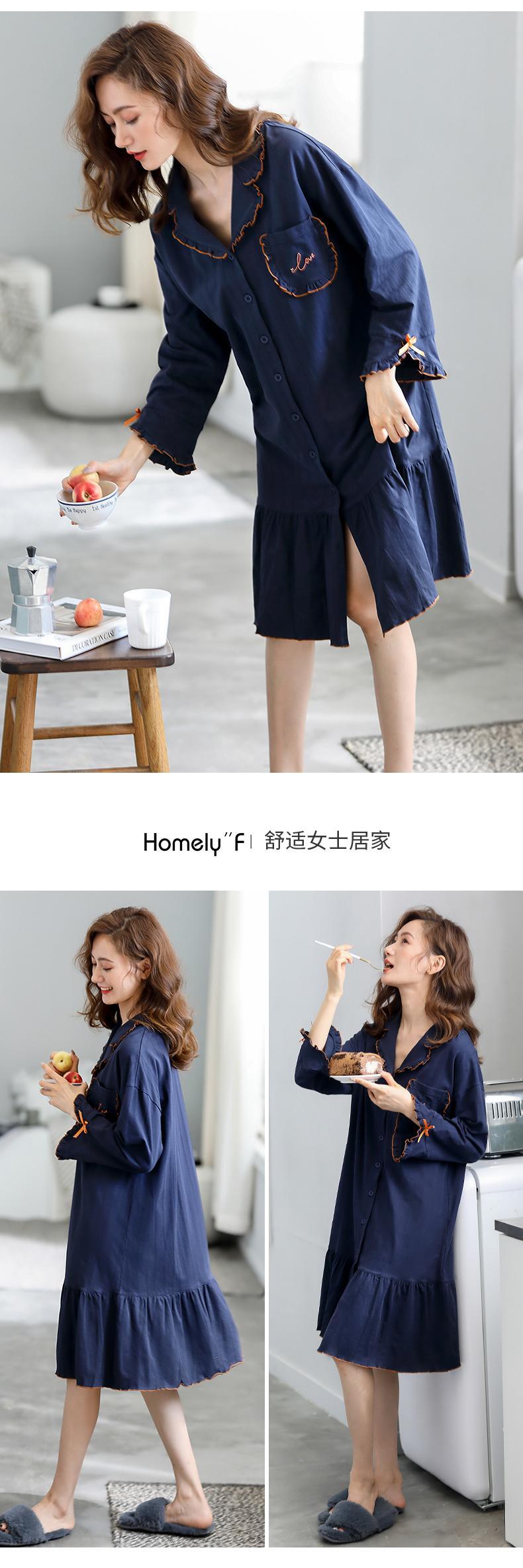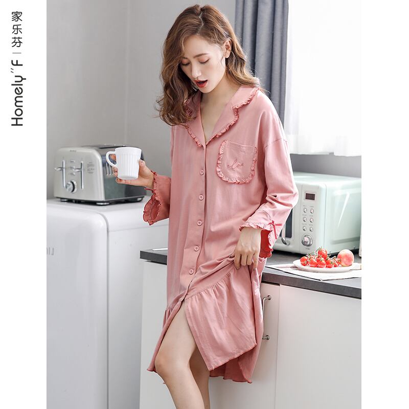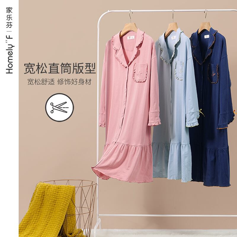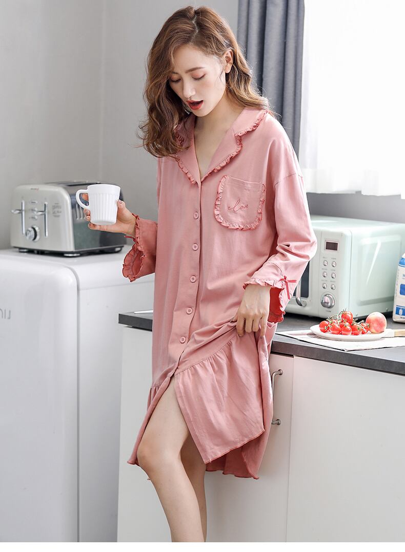 ナイトドレスレディースパジャマ春と秋の薄手の綿長袖長袖eseかわいい甘いプリンセススタイルプラスサイズのシャツカーディガン jial85510710712