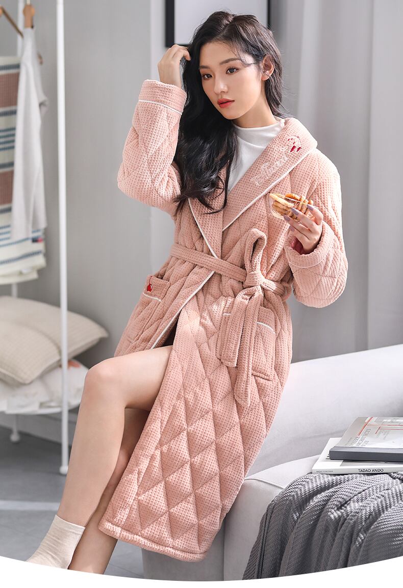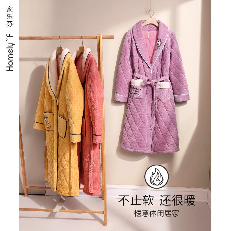 パジャマ、レディースパジャマ、バスローブ、冬用の厚手のキルティングジャケット、ベルベット、秋冬、ロングコーラルフリース、フランネル jial21953345980