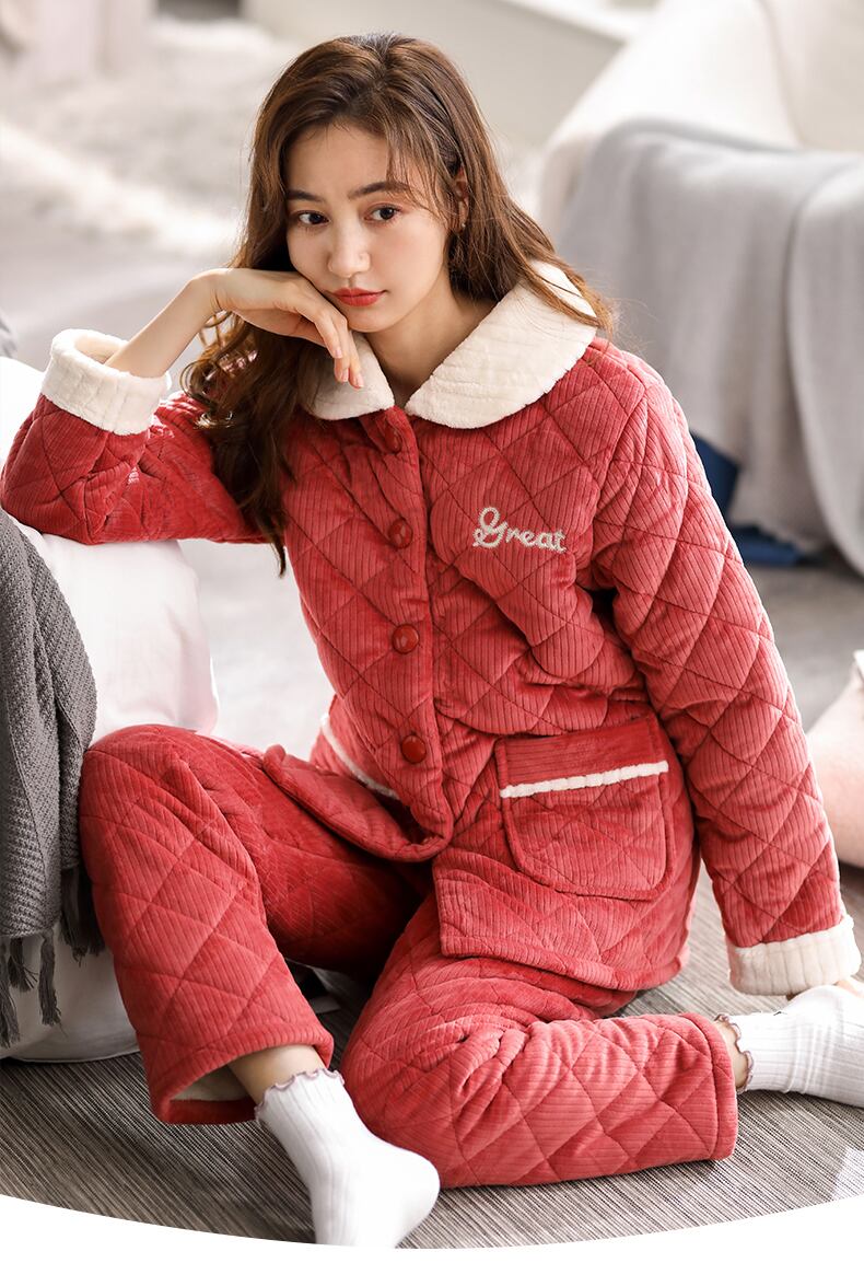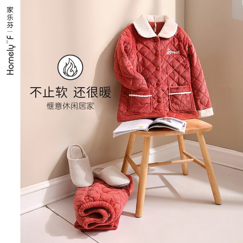 パジャマ女性の冬の3層の厚くキルティングフランネルとベルベットコーラルフリースホームサービス冬の秋と冬のスーツ jial42338728403