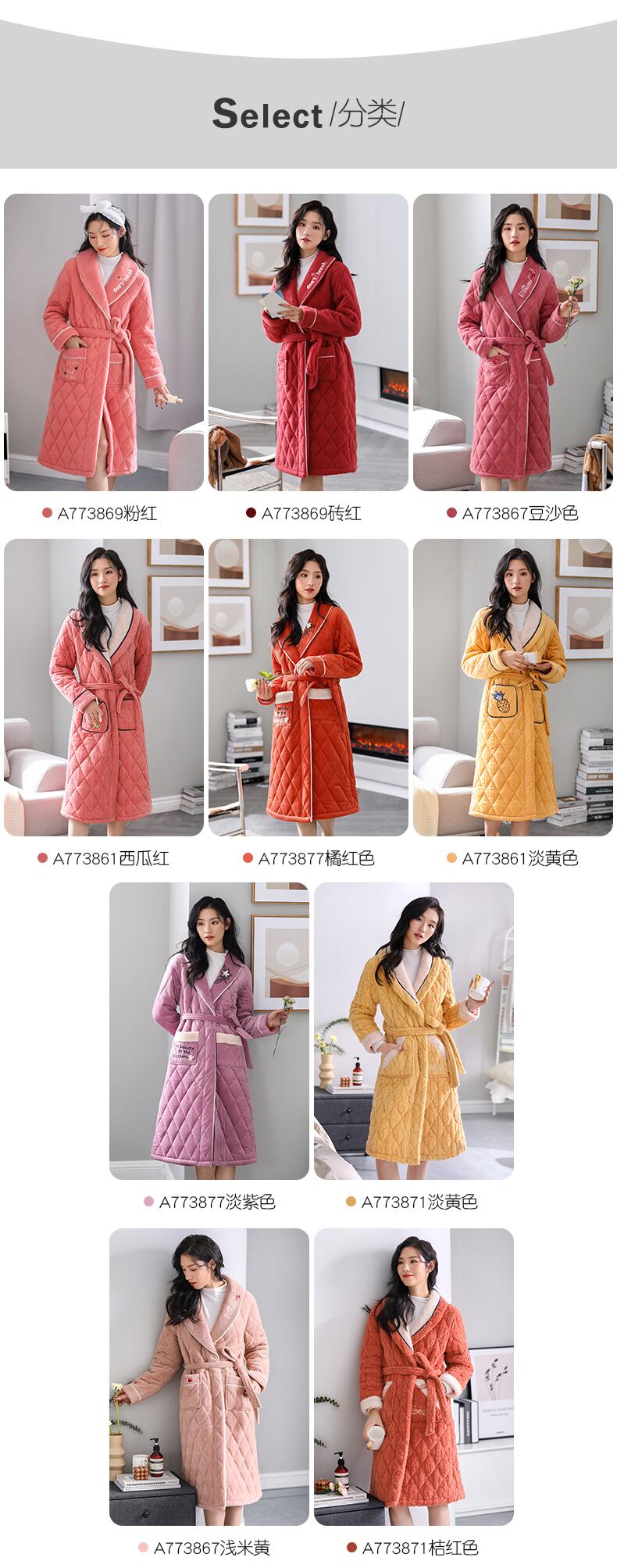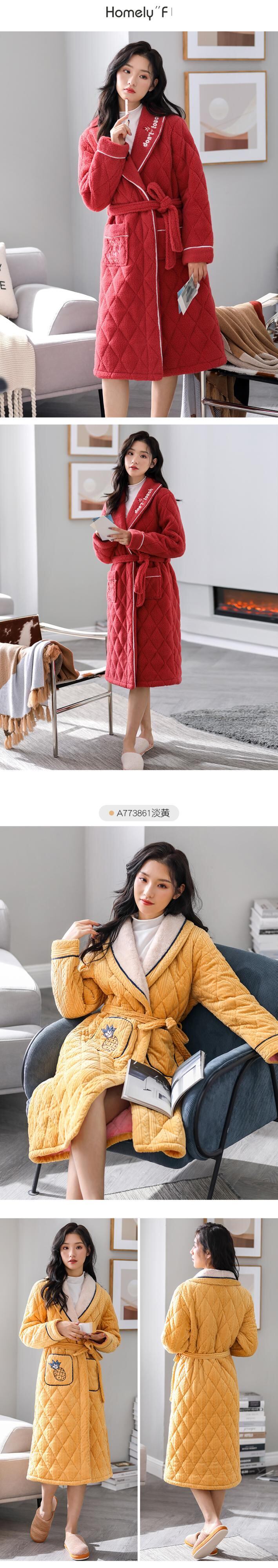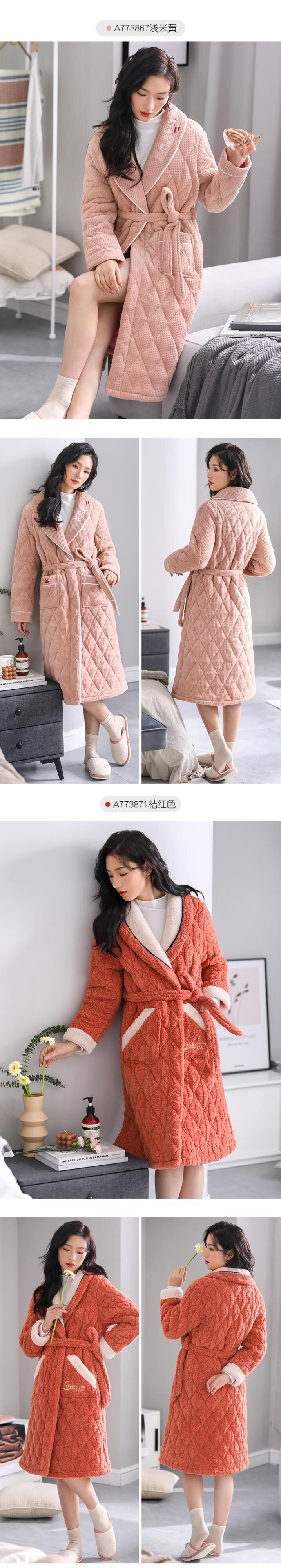パジャマ、レディースパジャマ、バスローブ、冬用の厚手のキルティングジャケット、ベルベット、秋冬、ロングコーラルフリース、フランネル jial98591024081