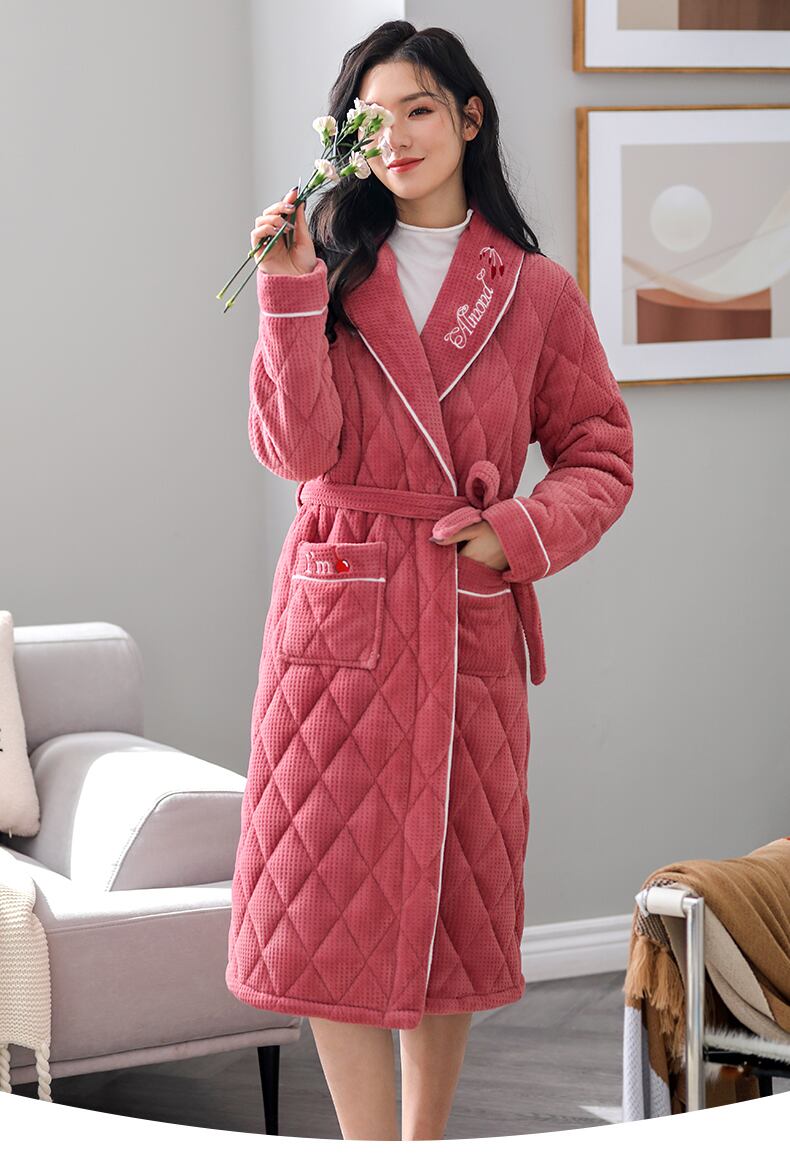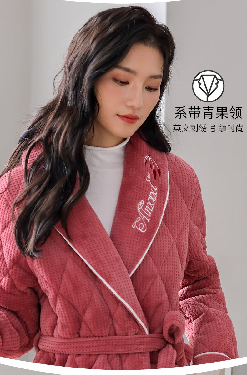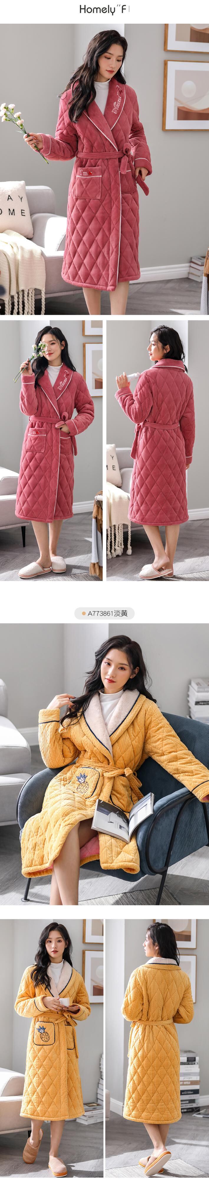 パジャマ、レディースパジャマ、バスローブ、冬用の厚手のキルティングジャケット、ベルベット、秋冬、ロングコーラルフリース、フランネル jial52559212866