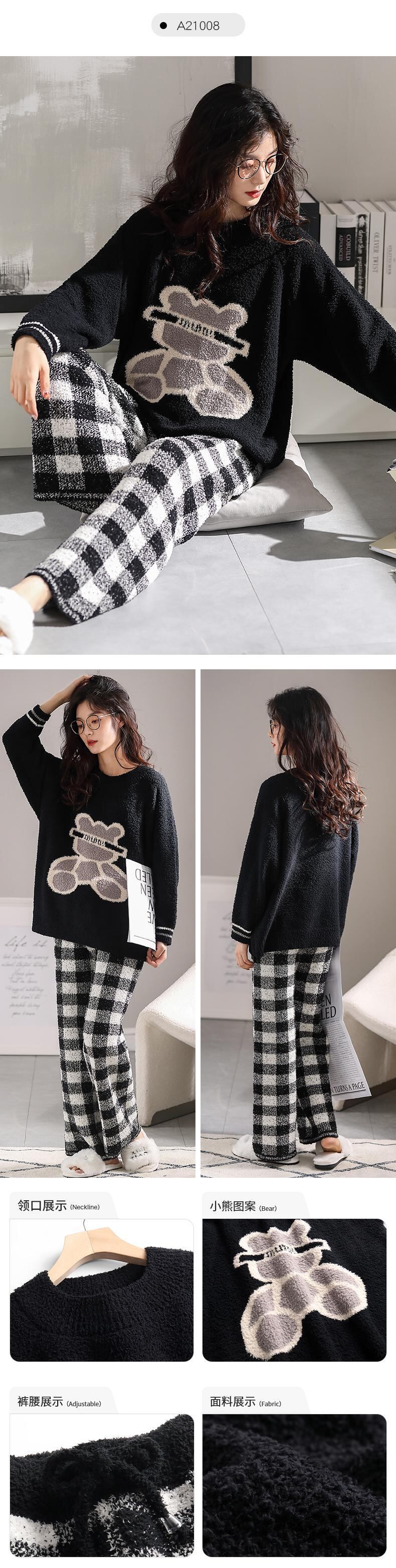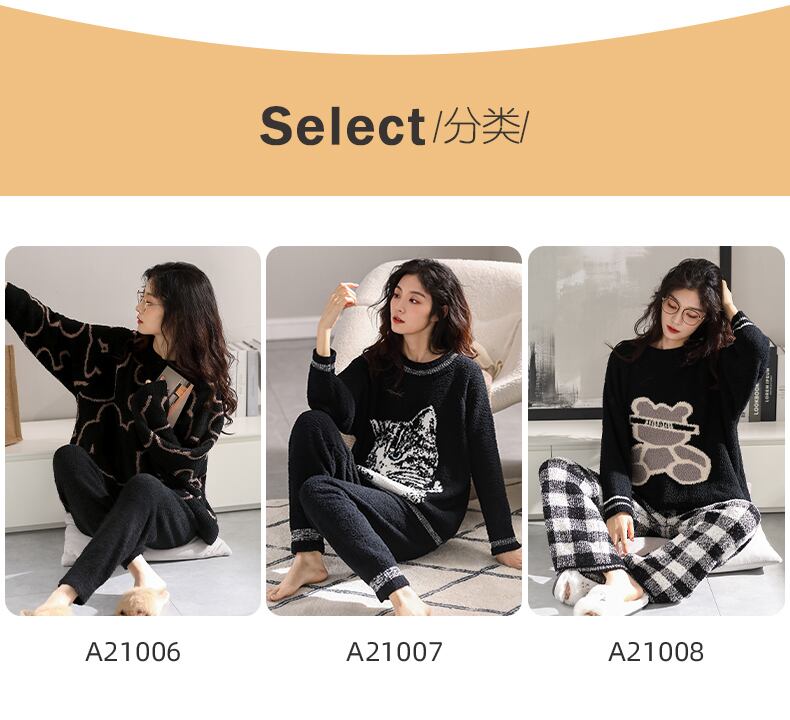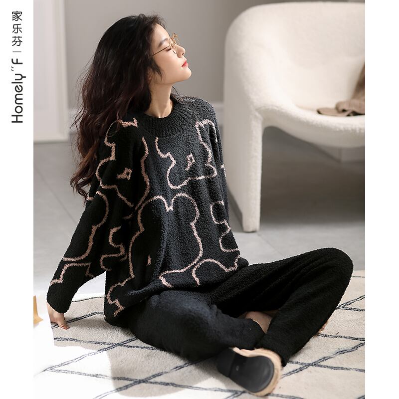 ハーフベルベットパジャマレディースコーラルベルベットフランネルスーツプラスベルベット厚い冬秋と冬薄い家庭服女性 jial72824814764